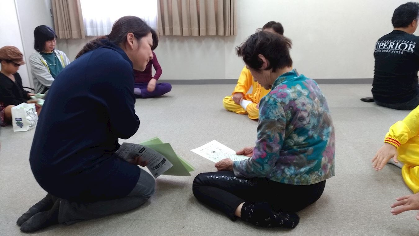 热诚的祇园西公民馆馆长特意在馆内放送、推荐体验法轮功,当时有很多人前来体验学习法轮功功法。炼功中很多人都感受到了很强的能量,身体感到发热。其中有两位八十岁的女士不停地擦汗,临走时还说:“炼功时身体真热呀!”并且,还有的人疲劳得到缓解,身体感到轻松。