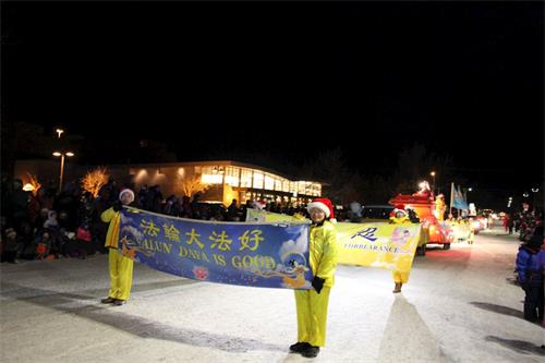 ![]() 图1~3:卡尔加里法轮功学员参加班芙圣诞灯光游行 |