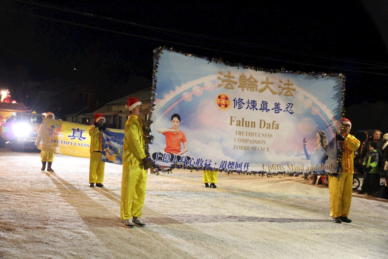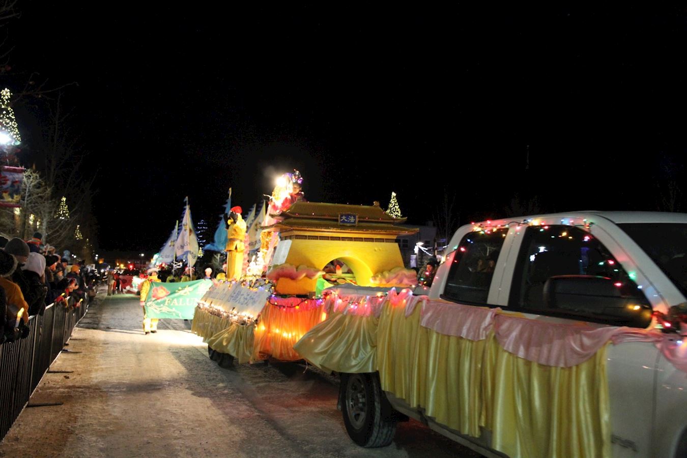 尽管当晚户外冰天雪地,但参加游行的学员都感到非常高兴,他们能感受到观众的喜悦和对法轮大法真相的热切期盼。