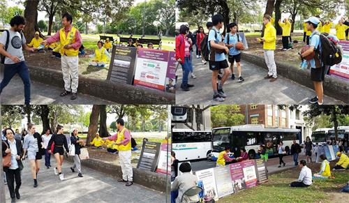 从二零一八年十月二十六日至圣诞前的每个周五下午至傍晚,来自世界各地的游客和当地民众,都能看到法轮功学员在中央火车站附近的两个公园里,看到法轮功学员展示祥和美好的五套功法和揭露中共持续迫害法轮功十九年的罪行。