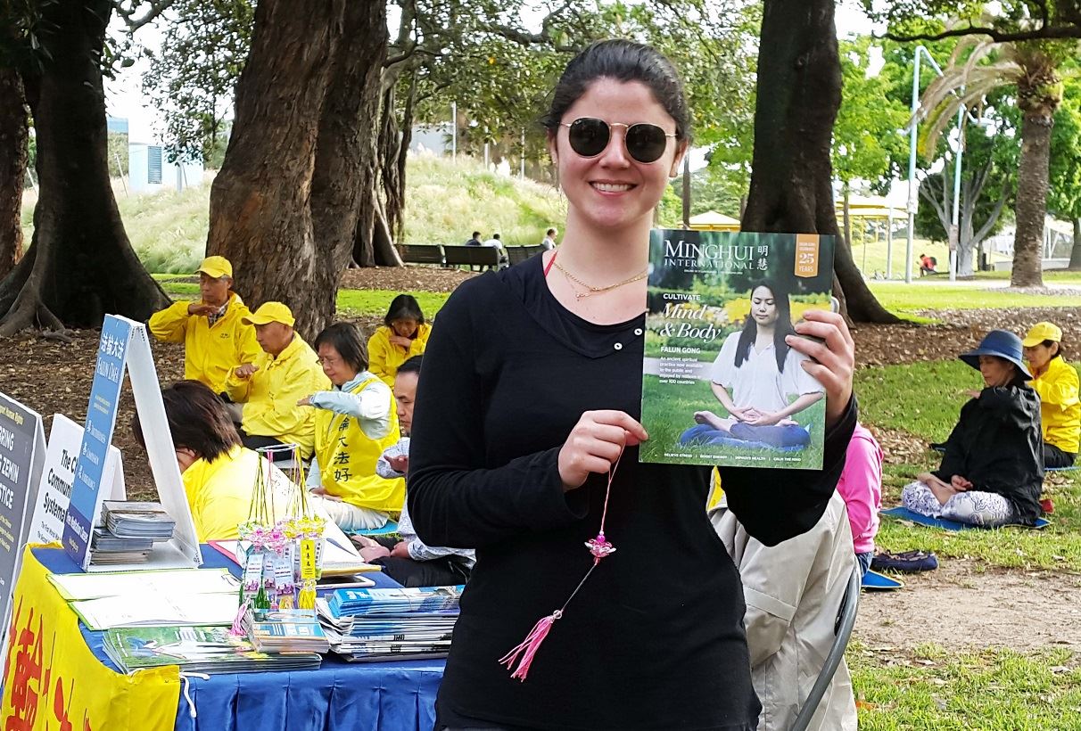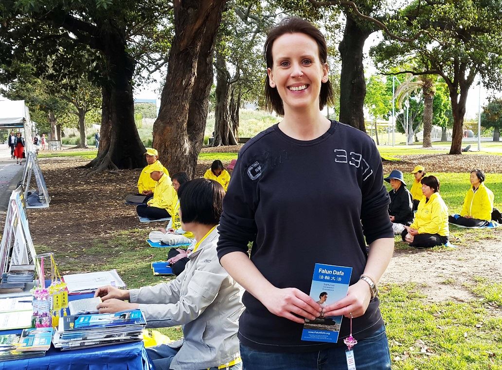 在慈善机构工作的莱昂妮·李棋(Leonie Lynch)表示:“当我走过法轮功展位时,我能够感受到他们祥和的能量场,在城里很少能看到这样美好的场景。我看到他们是那么的祥和、善良,他们有股神奇的力量吸引着我。”