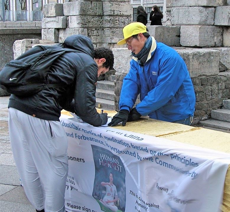 一位来自多特蒙德的中年女士告诉学员,她已经在几年前就为反迫害签过名了。她非常希望迫害能够早日结束。