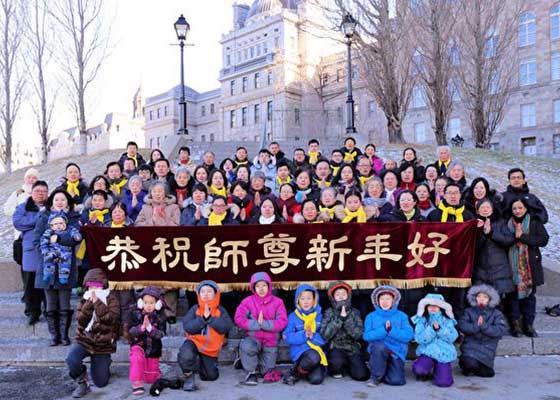 十二月二十五日,加拿大魁北克的部份中西方法轮大法学员汇集蒙特利尔,怀着无比的敬意,恭祝法轮大法创始人李洪志大师新年好。