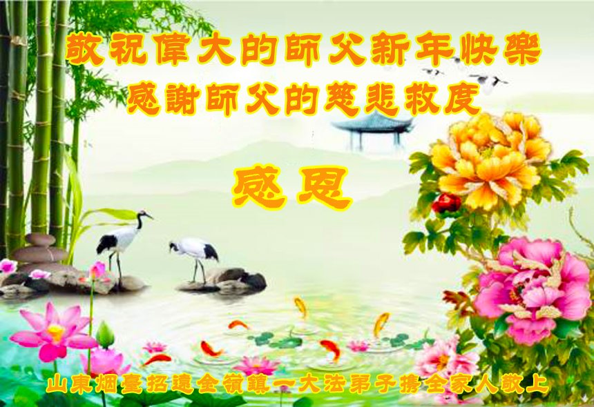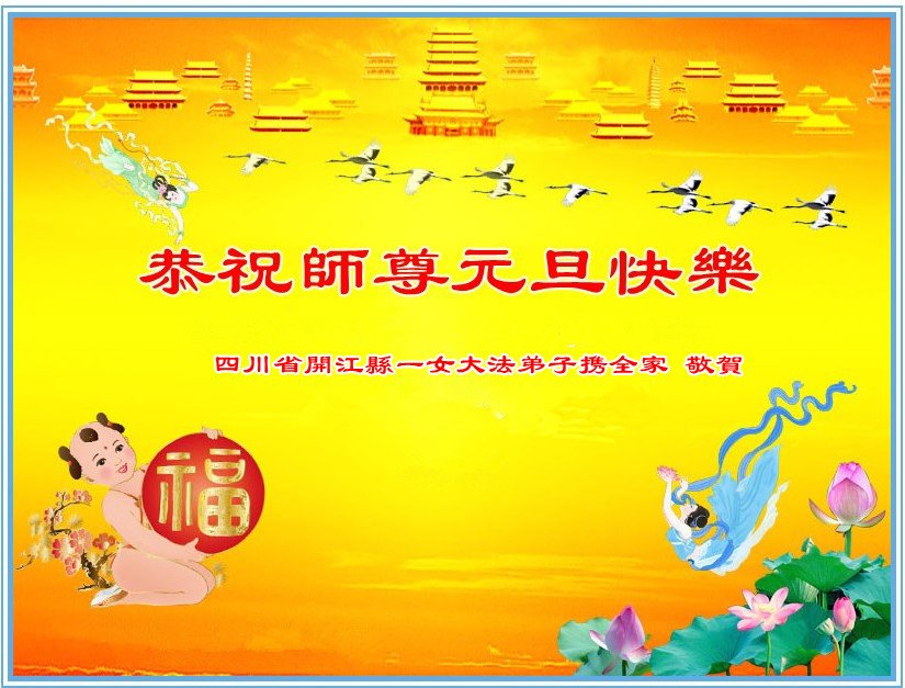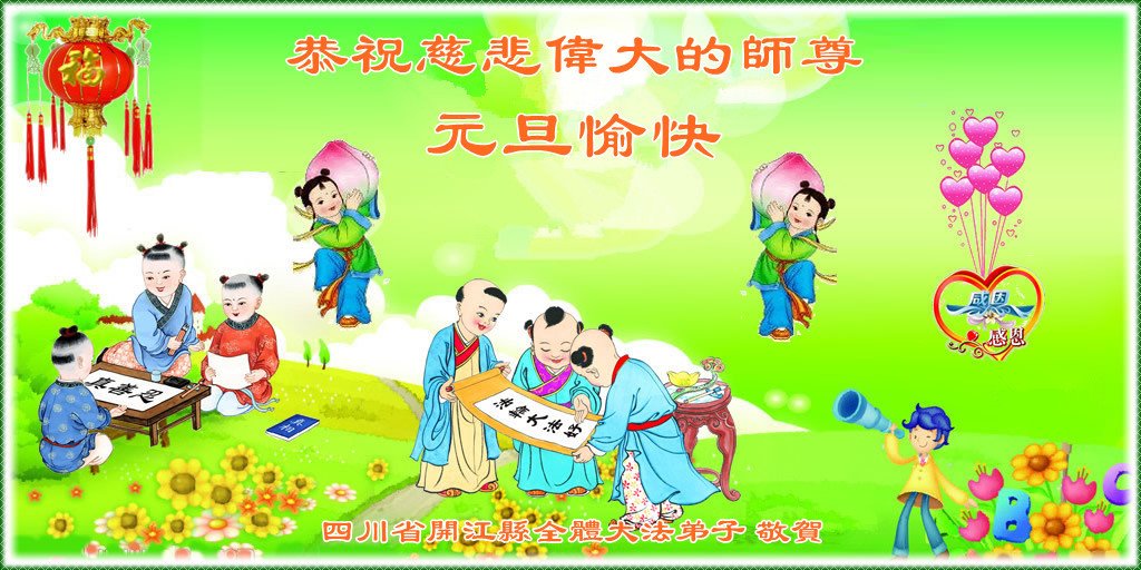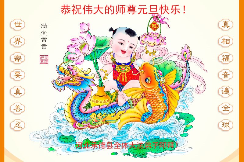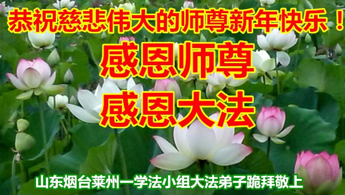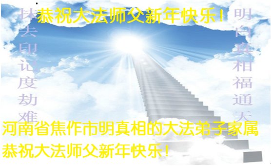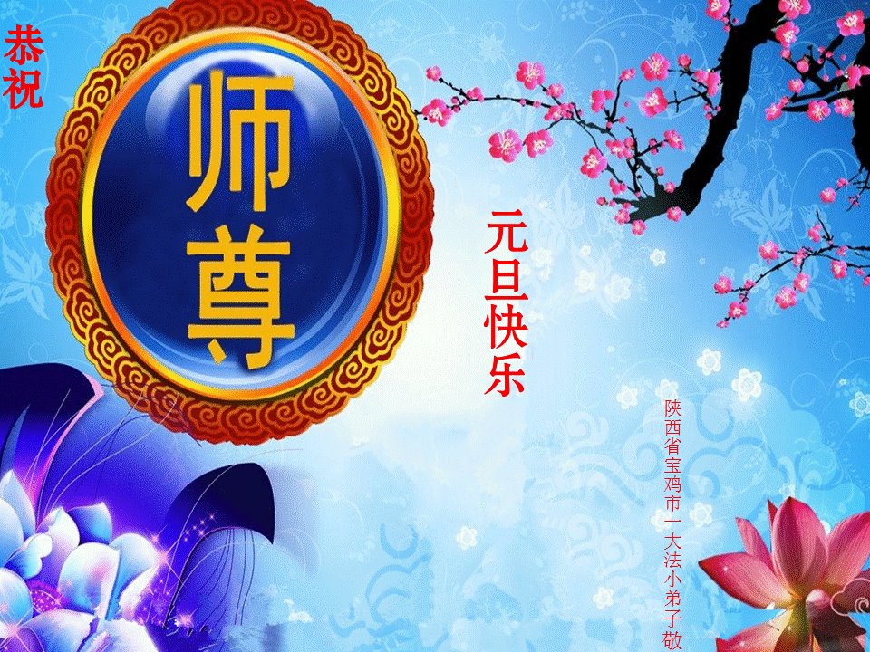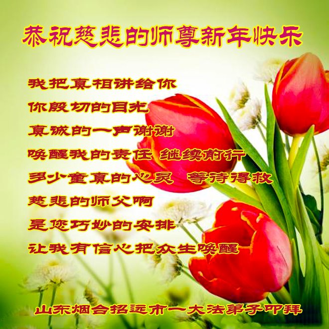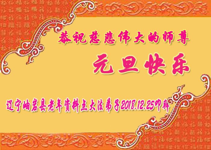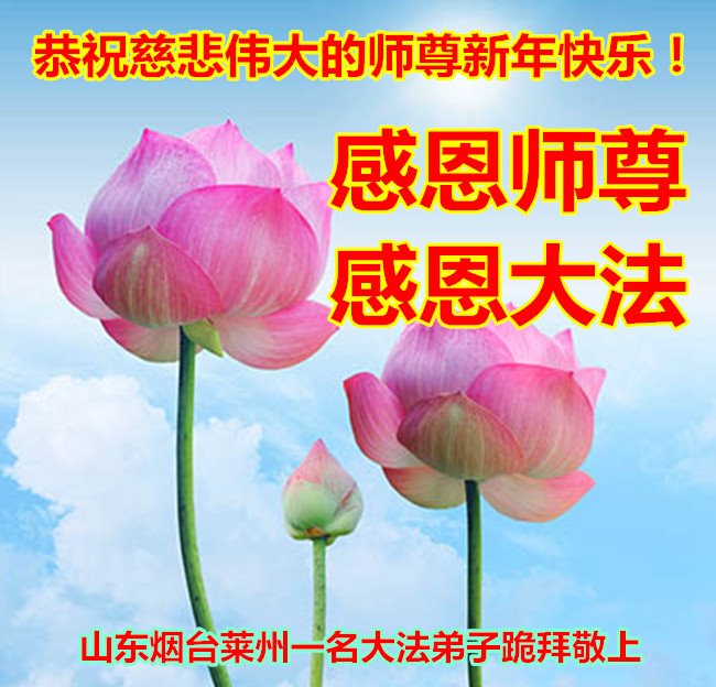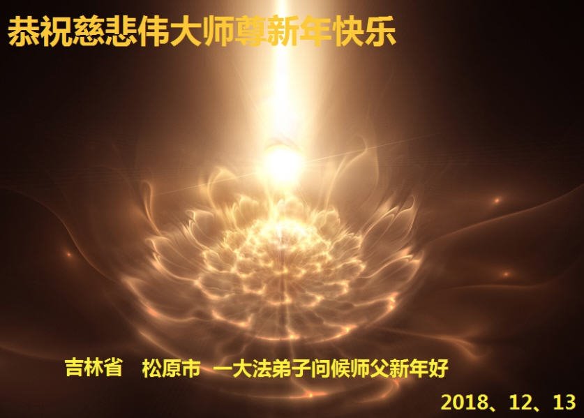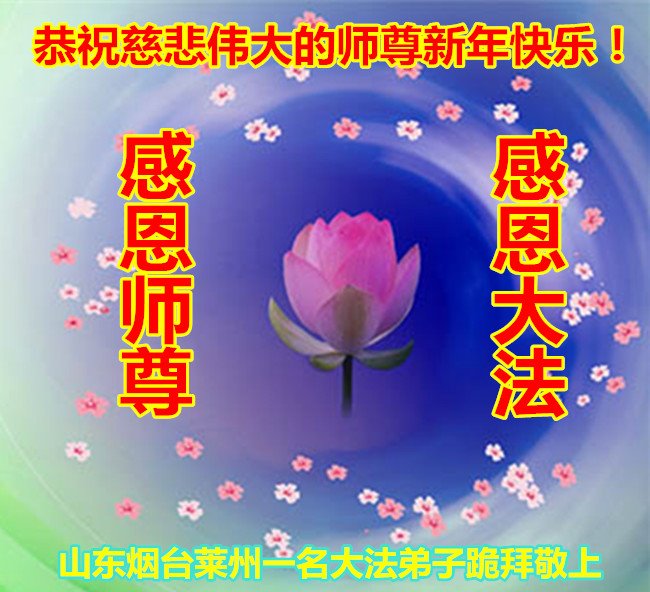 恭祝李大师元旦快乐!新年好!感恩李大师您的慈悲救度!把法轮大法的美好赐给我们!您的弟子告诉我们法轮大法真相,并让我们三退后诚念“法轮大法好!真善忍好!”我们就拥有了健康的身体以及给家人也带来了幸运,做生意和做事都兴旺顺利,告诉家人大法好他们也事事顺。