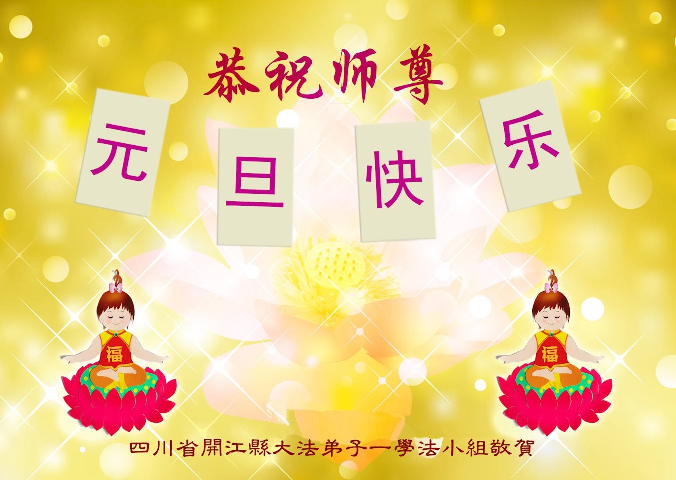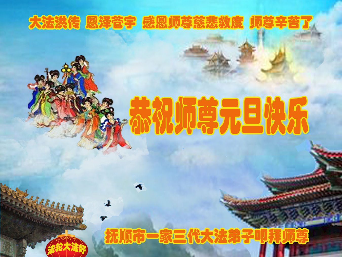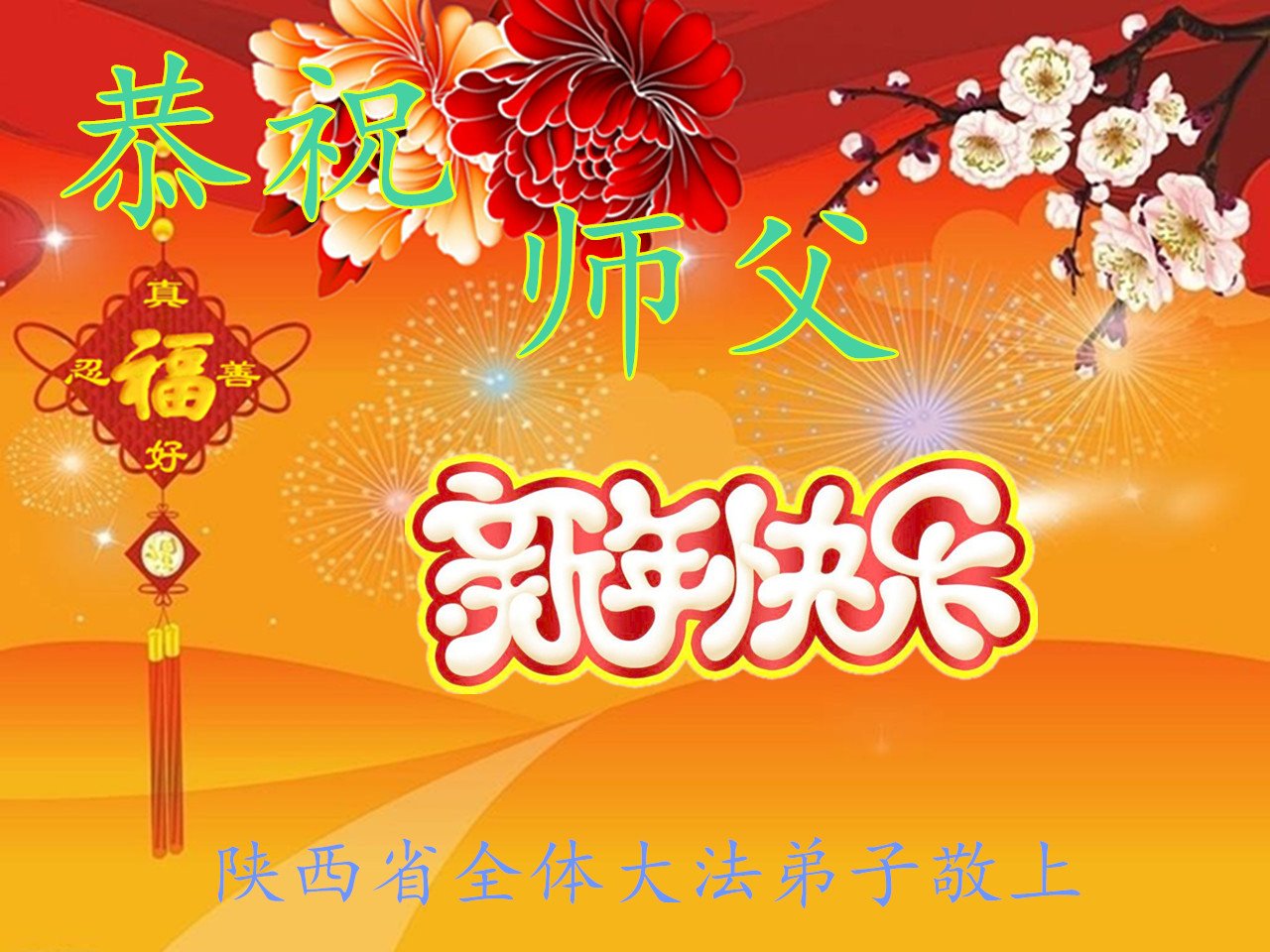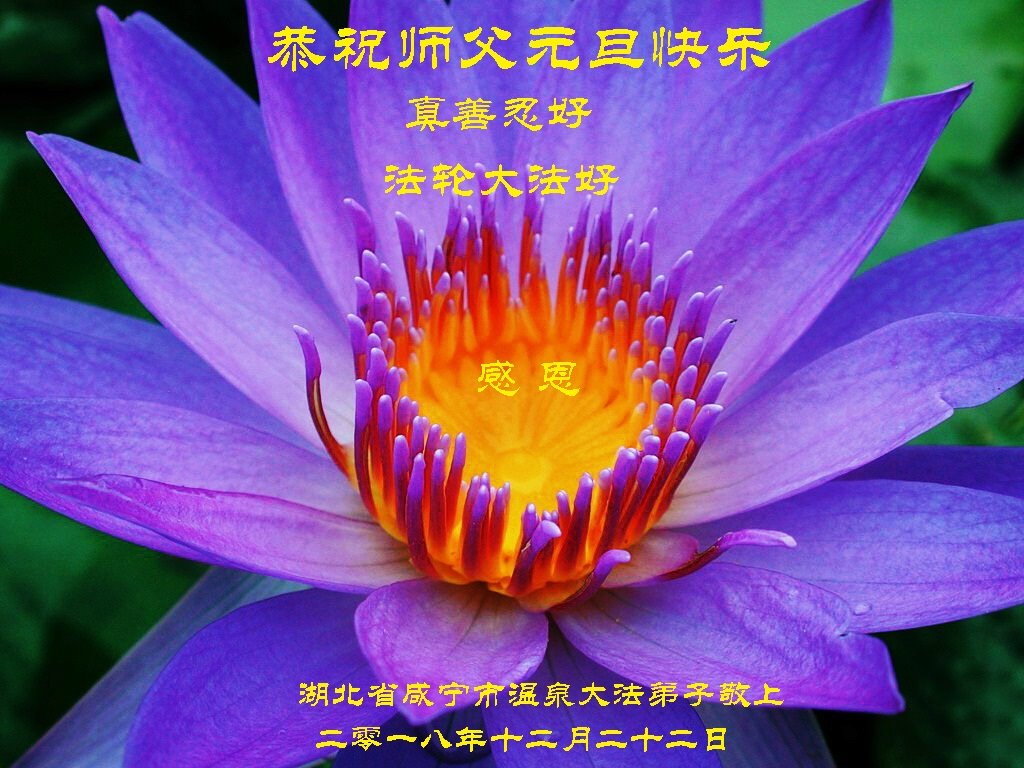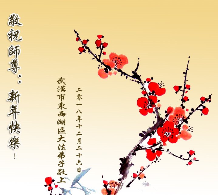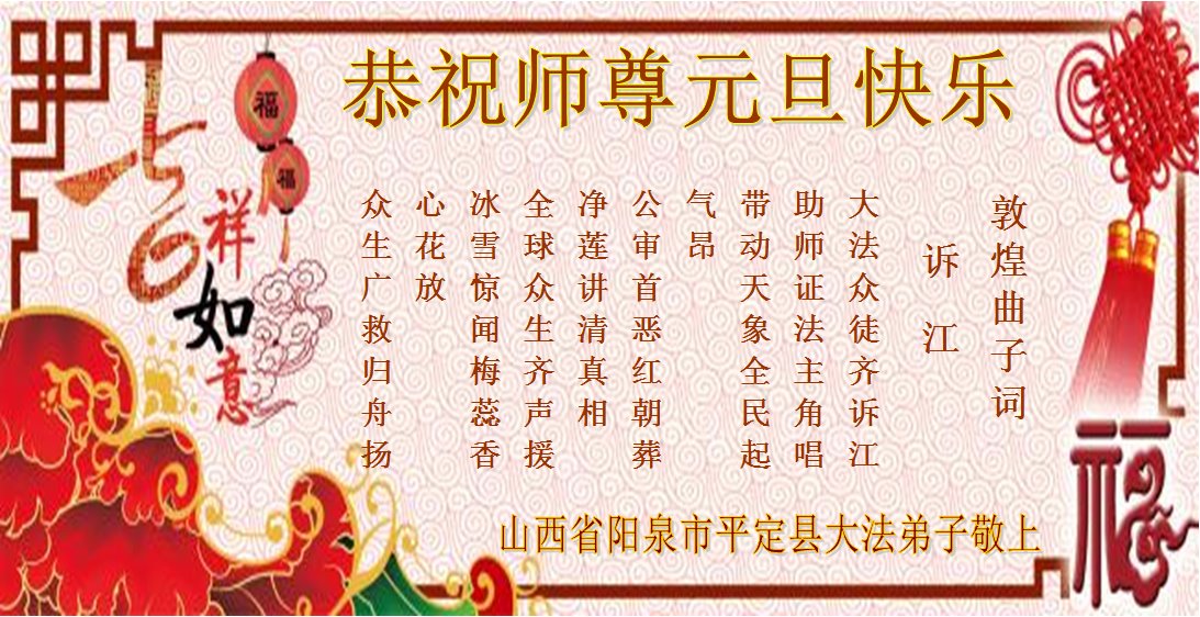 恭祝李大师元旦快乐!新年好!感恩李大师您的慈悲救度!把法轮大法的美好赐给我们!您的弟子告诉我们法轮大法真相,并让我们三退后诚念“法轮大法好!真善忍好!”我们就拥有了健康的身体以及给家人也带来了幸运,做生意和做事都兴旺顺利,告诉家人大法好他们也事事顺。