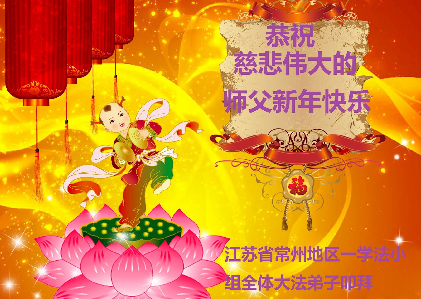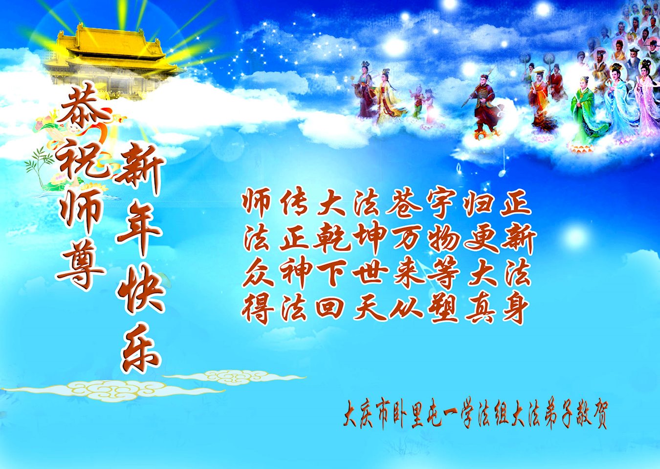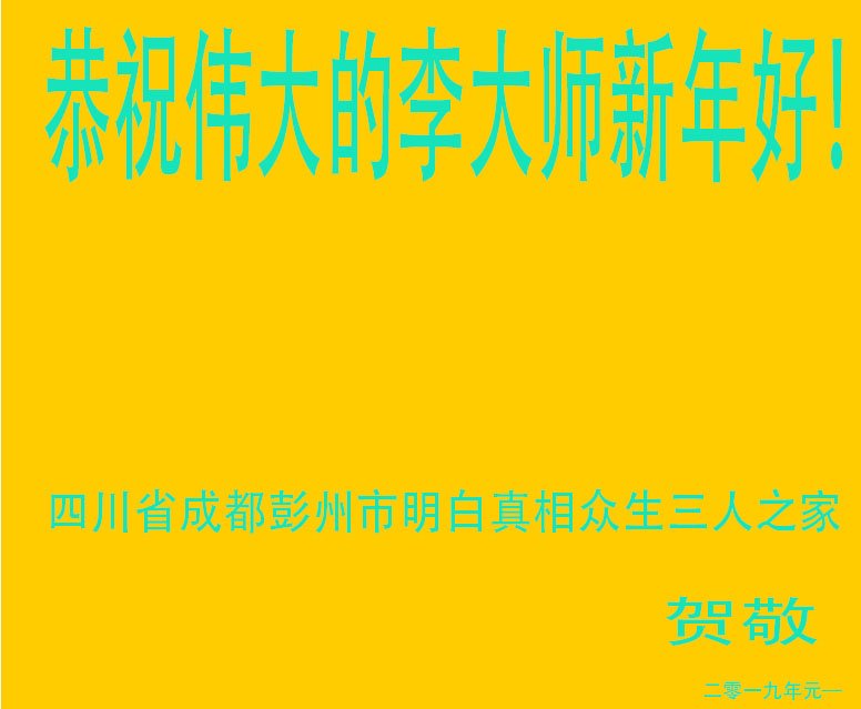 黑龙江大庆明白大法真相、知道“法轮大法好”的一民众恭祝慈悲伟大的李老师新年好!新年快乐!