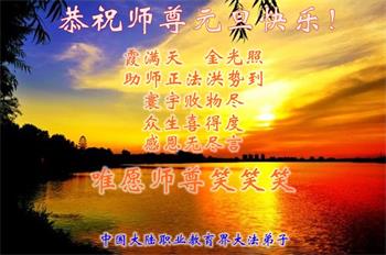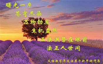 师父的恩德我永远无以报答。能在大法中修炼,我感到无比幸福。新年就要到了。师父,祝您新年好!”