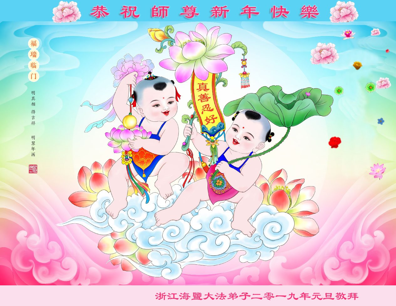 时值2019新年来临之际,我和我全家再一次恭祝大法师父新年好!