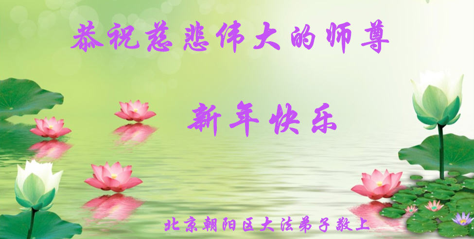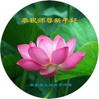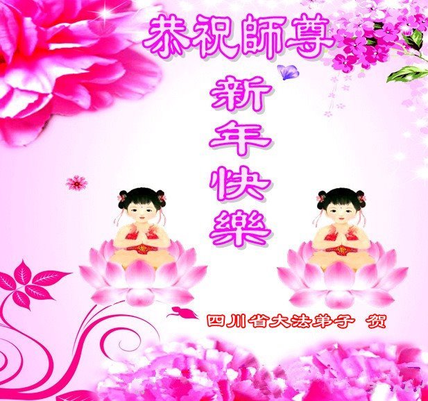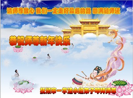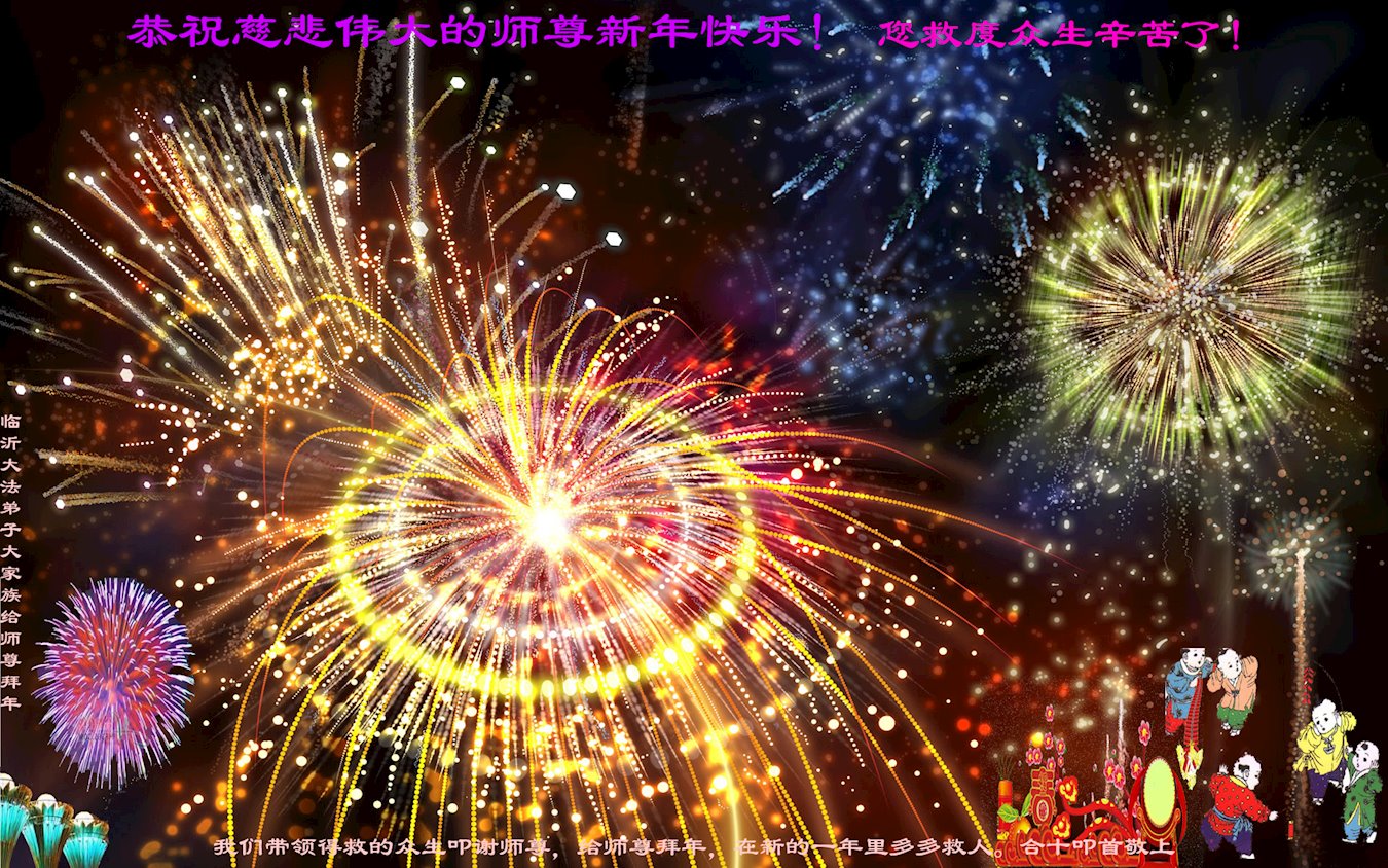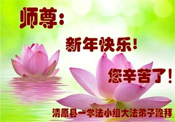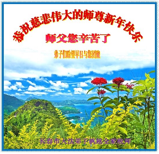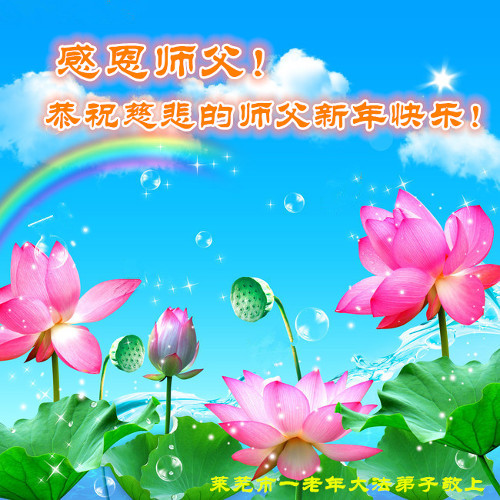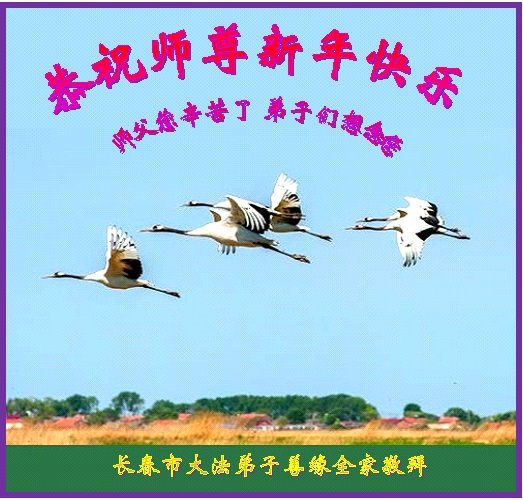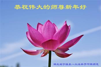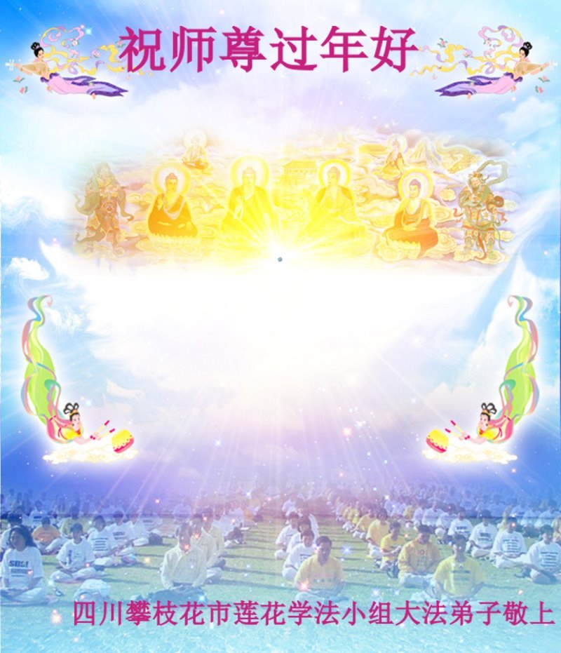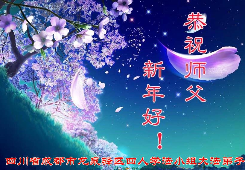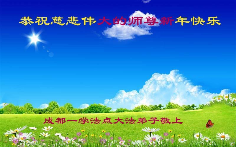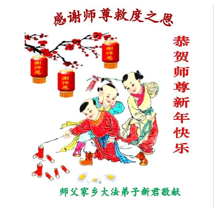 尊敬的师父:您好!在师尊救度苍穹、法正万宇的伟大正法中,新的一年来临了。值此辞旧迎新之际,法国大法弟子在无限感恩中向慈悲伟大的师父拜年!恭祝师父新年快乐!法国大法弟子合十敬拜!