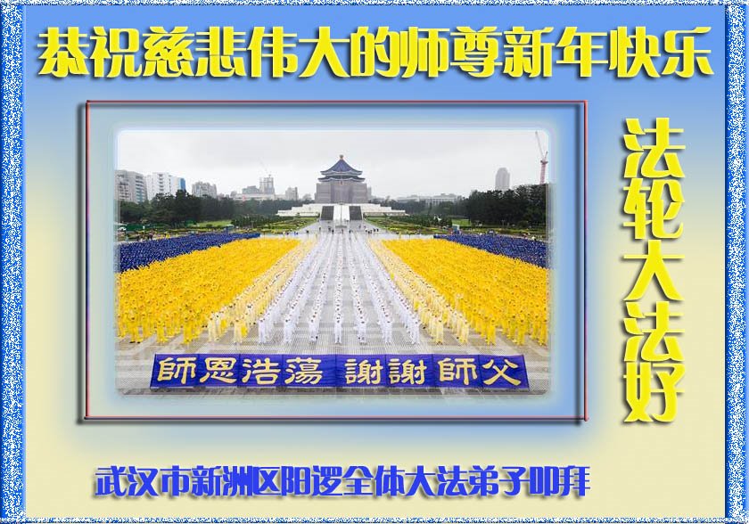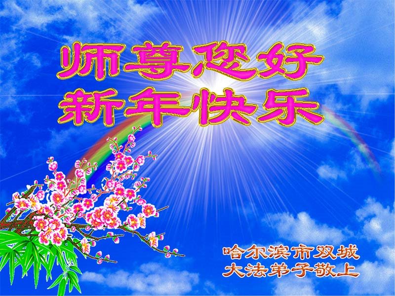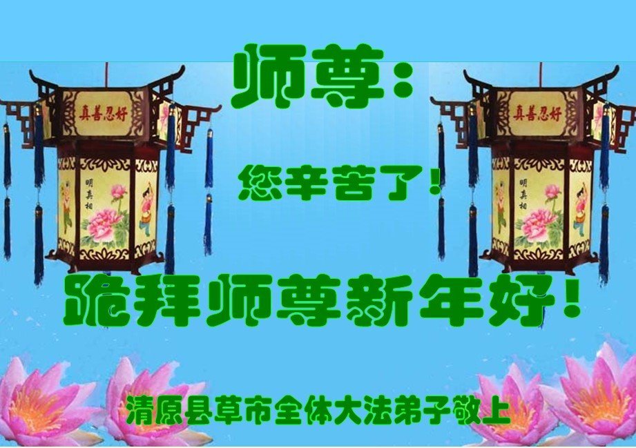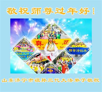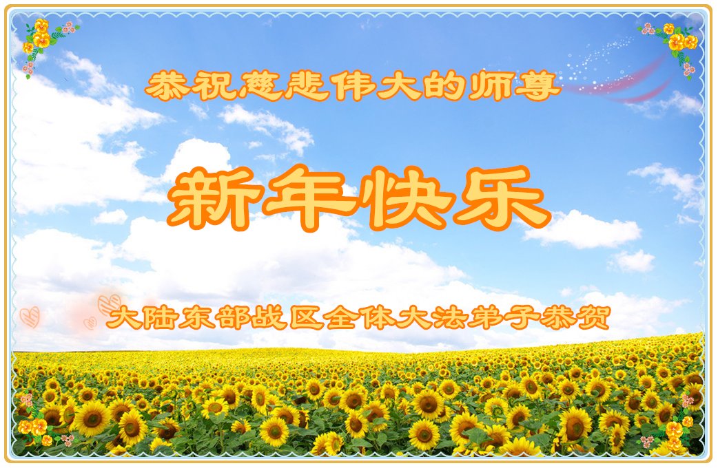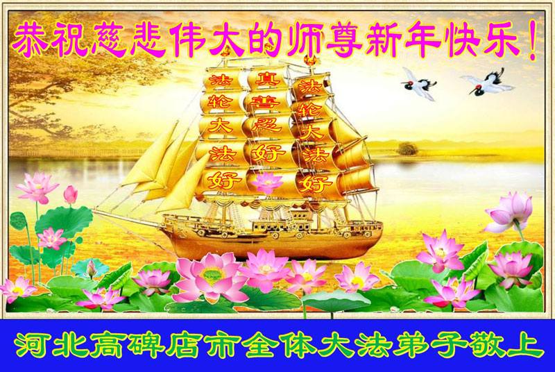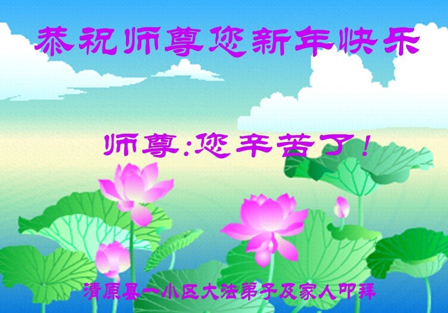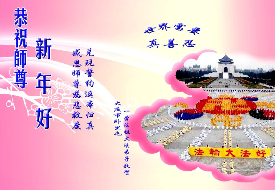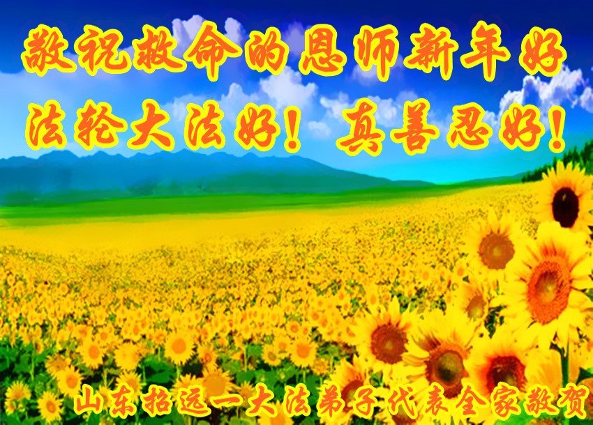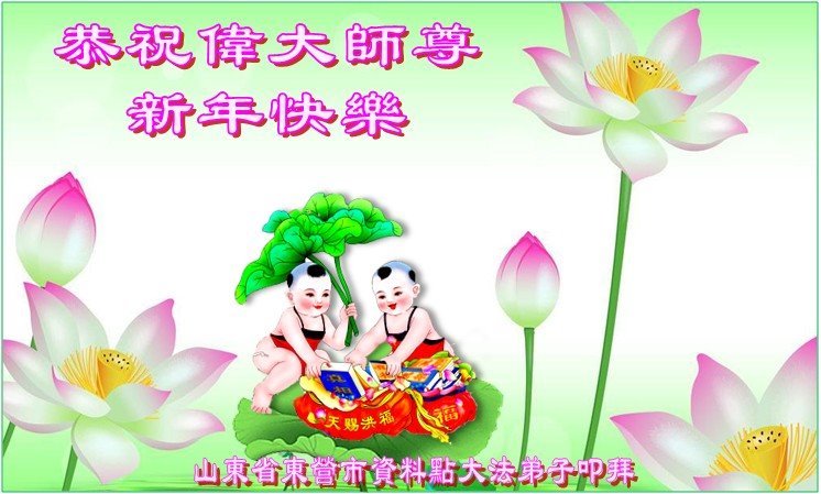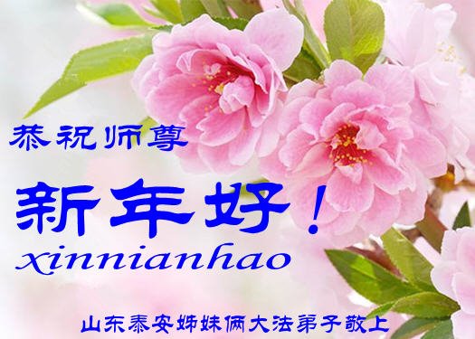 尊敬的师父:您好!在师尊救度苍穹、法正万宇的伟大正法中,新的一年来临了。值此辞旧迎新之际,法国大法弟子在无限感恩中向慈悲伟大的师父拜年!恭祝师父新年快乐!法国大法弟子合十敬拜!