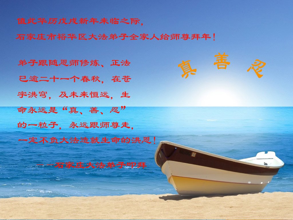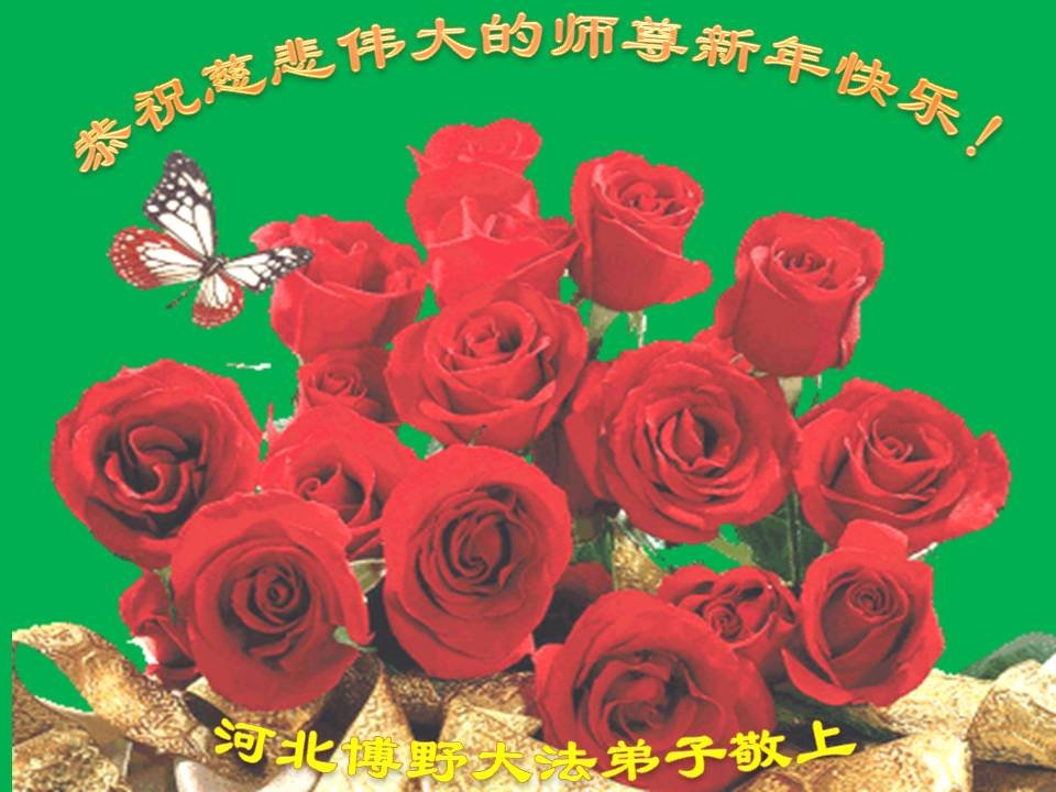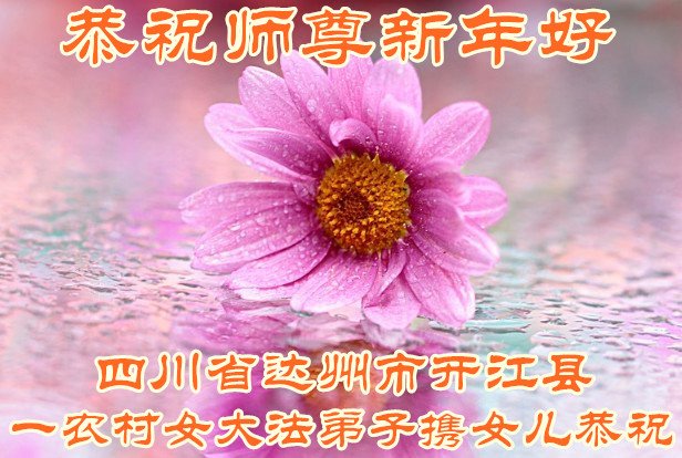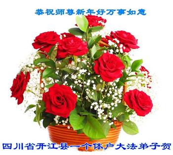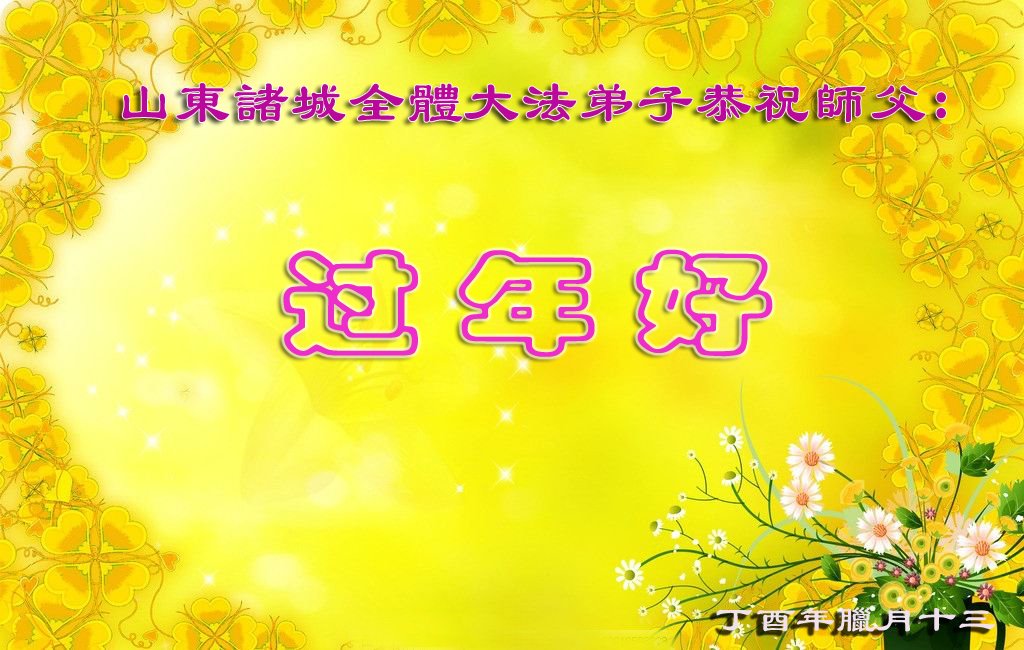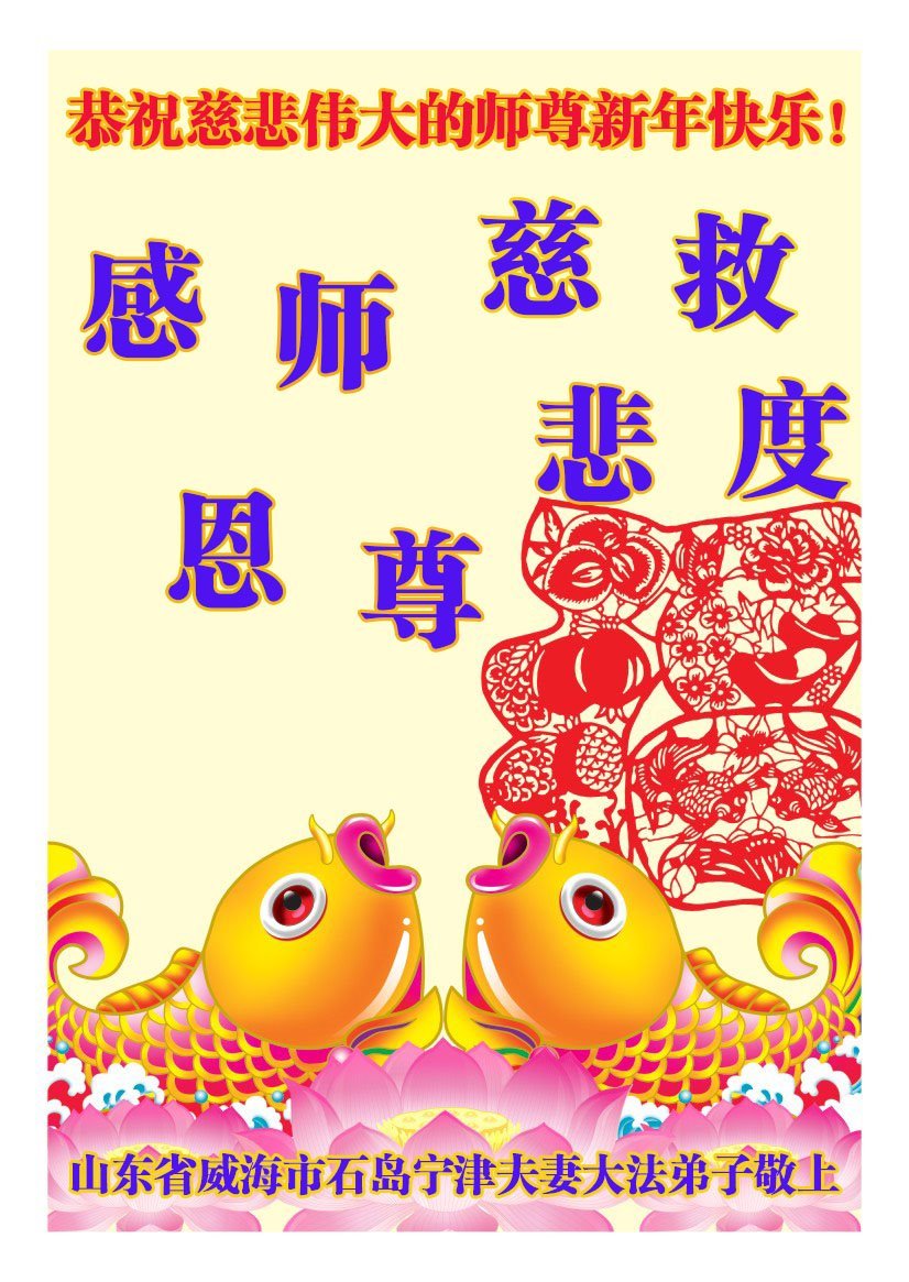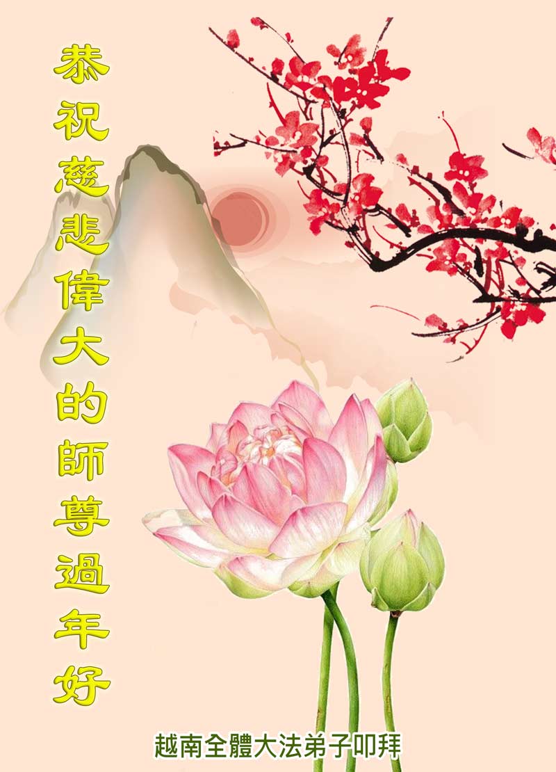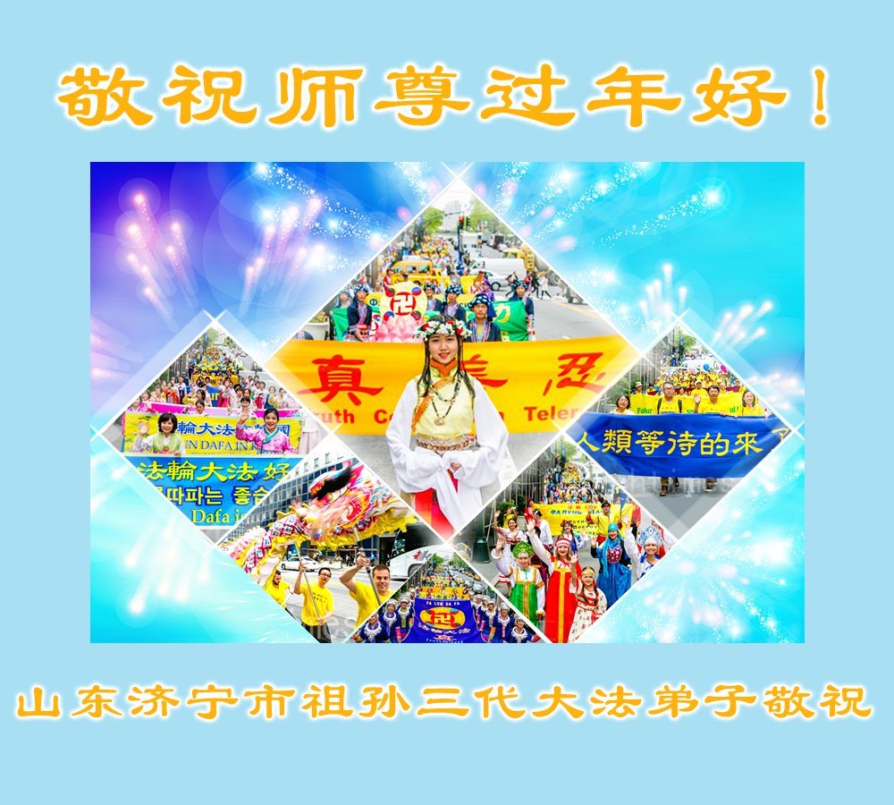 尊敬的师父:您好!在师尊救度苍穹、法正万宇的伟大正法中,新的一年来临了。值此辞旧迎新之际,法国大法弟子在无限感恩中向慈悲伟大的师父拜年!恭祝师父新年快乐!法国大法弟子合十敬拜!