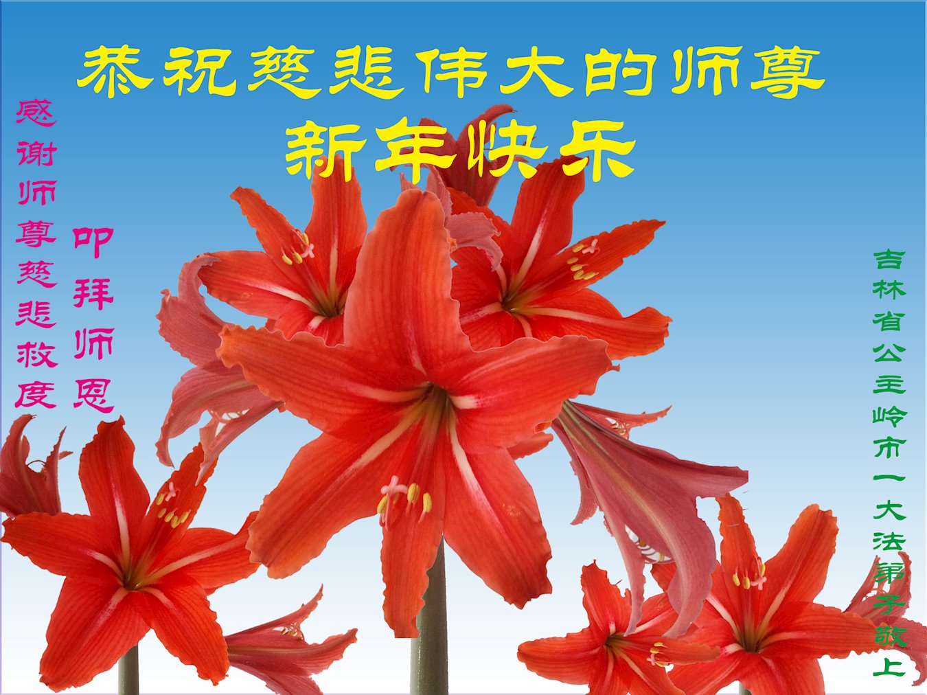新年之际,恭祝师尊新年快乐!不争气的弟子无限感恩师父的慈悲救度。