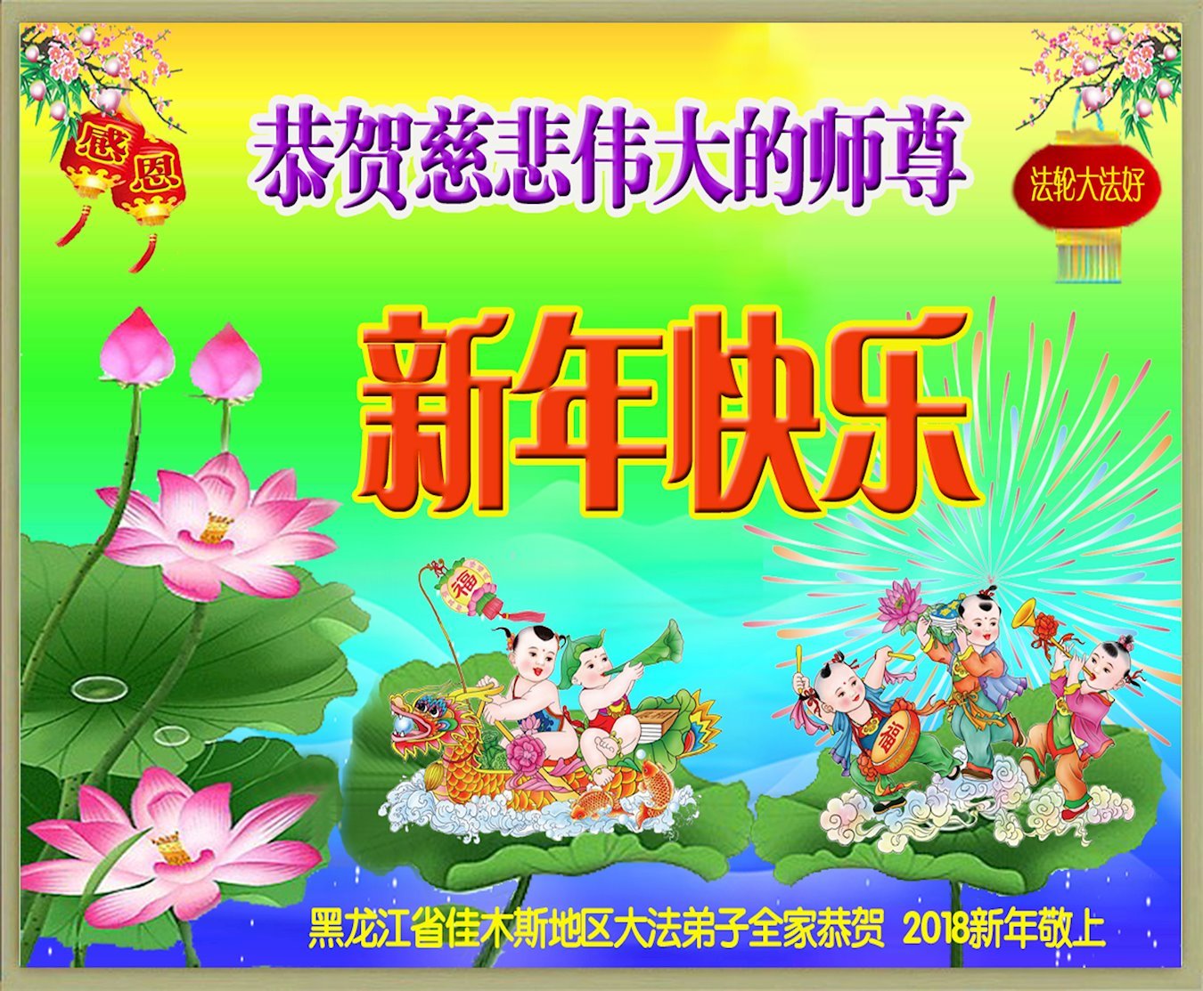 在二零一八年传统新年到来之际,他们感恩李洪志师父,恭祝师父新年好!