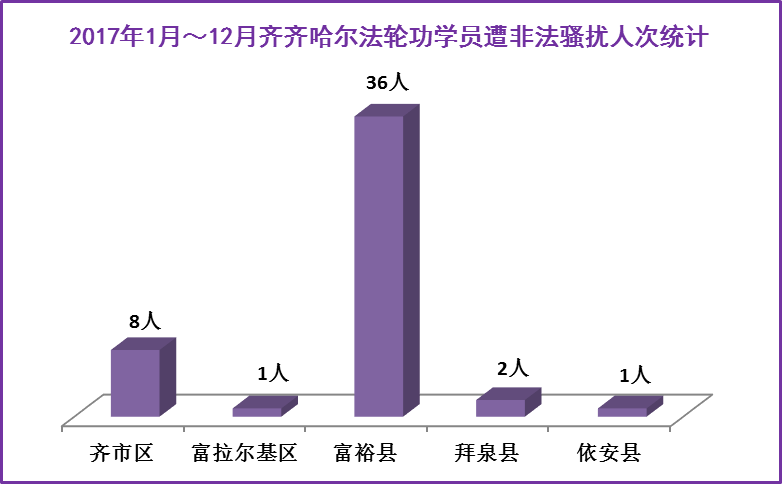![]() 图1:2017年齐齐哈尔法轮功学员遭迫害人次统计 |
