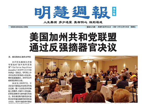 加州共和党联盟通过反强摘器官决议