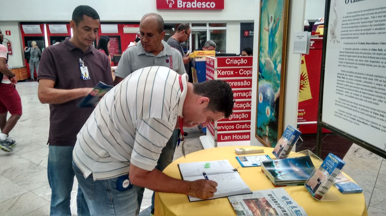 【明慧网二零一八年三月六日】二零一八年中国戊戌新年前后,巴西各地学员到城市大型商场,市政府服务中心举办“真善忍”美展;在圣保罗市华裔区广场举办讲真相活动;系列讲真相活动不仅让更多的世人明真相,也吸引了越来越多的人们来到炼功点开始学炼法轮功。