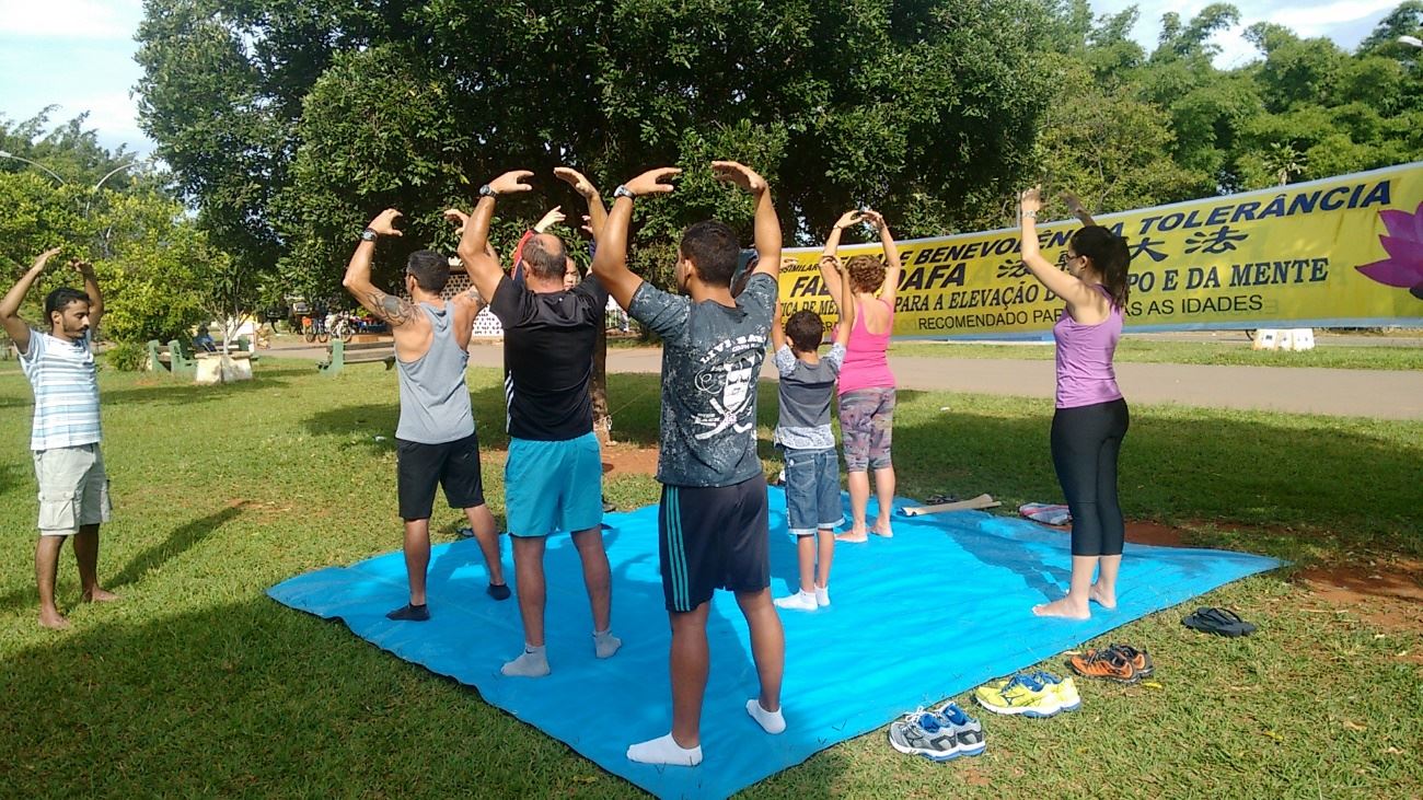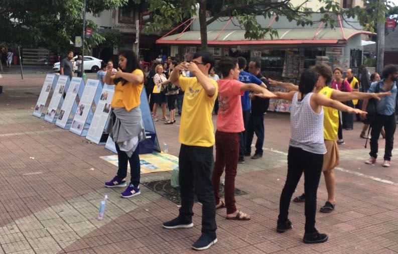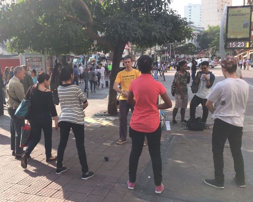 巴西的学员们每周一至二次在华裔区Liberdade中心广场展开活动已经有几个月了,从简易的小横幅到系列的真相展板,从几个人到更多人,许多华裔民众开始学功。中文真相报纸、和葡萄牙文传单都在大量发放。