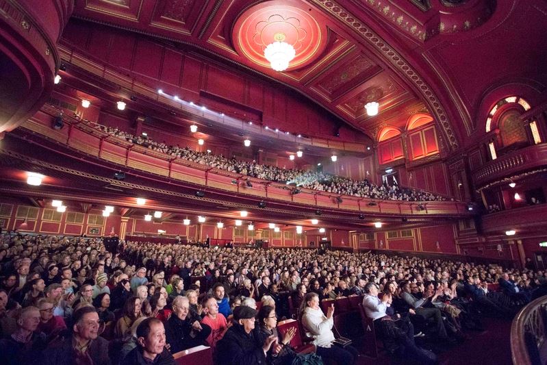 ![]() 图1:二零一八年二月十六日到二月二十五日,神韵纽约艺术团在伦敦进行了连续十天的十四场演出,场场大爆满,演出票在开演一周前全部售罄。图为二月二十三日,伦敦第十场神韵演出在古色古香的多米尼恩剧院上演,观众座无虚席的盛况。 |