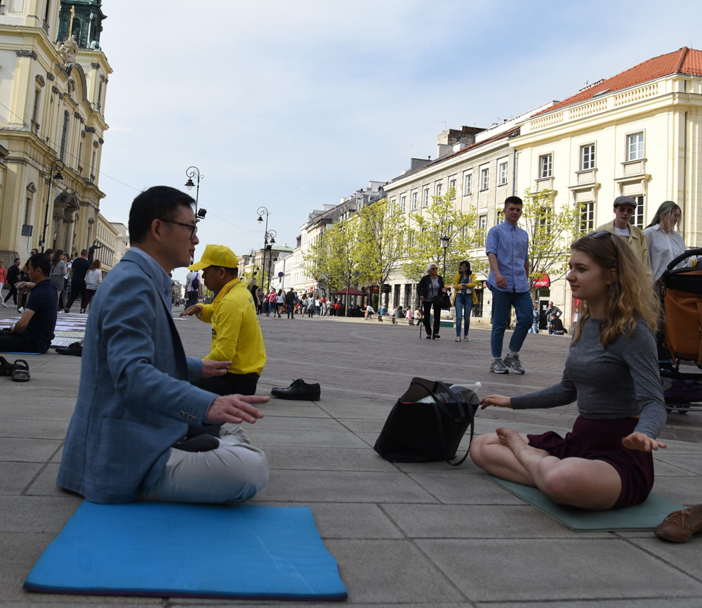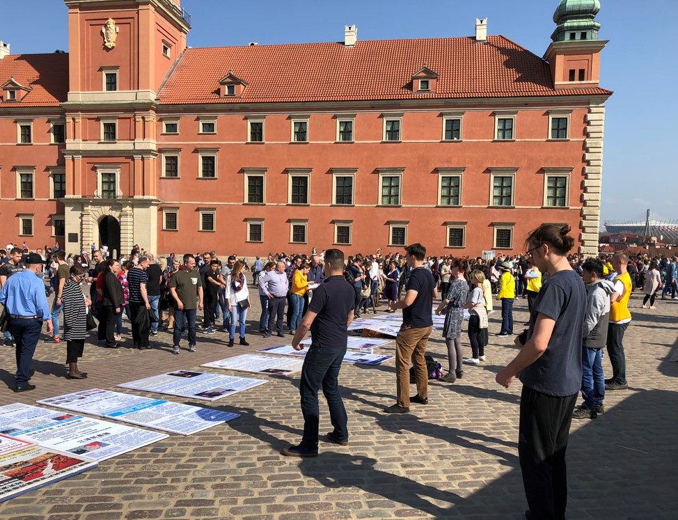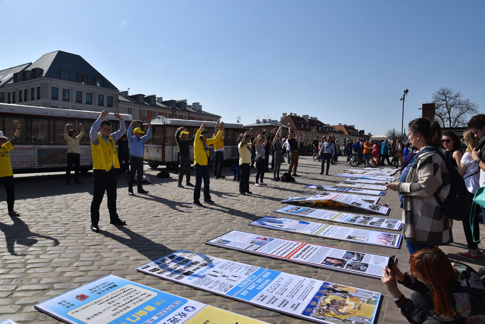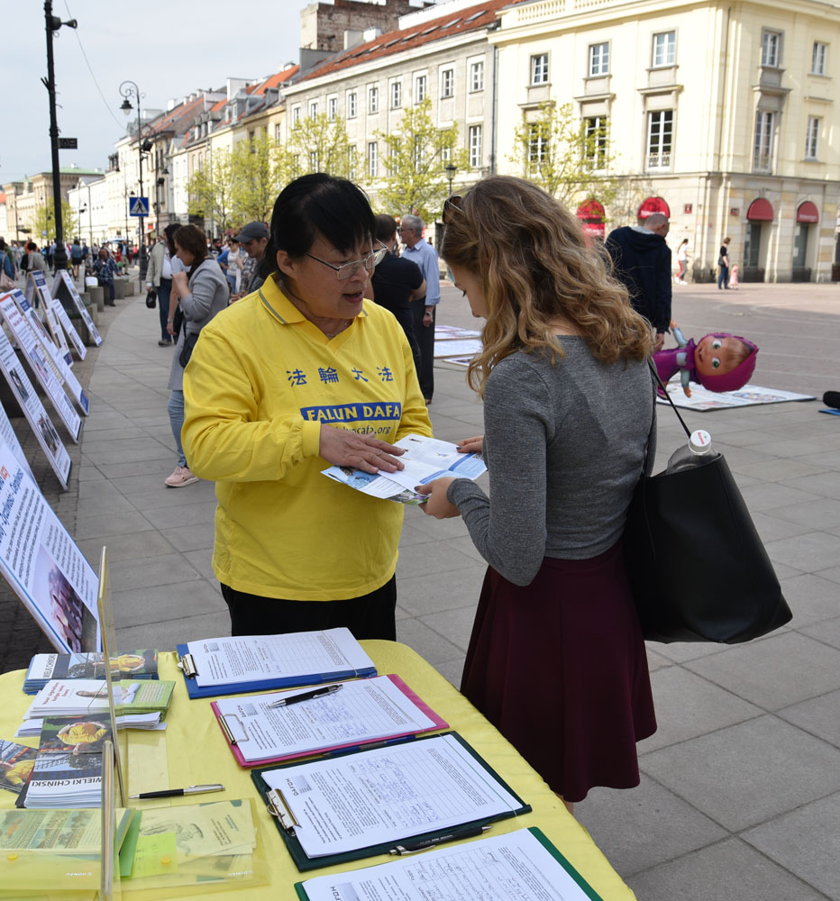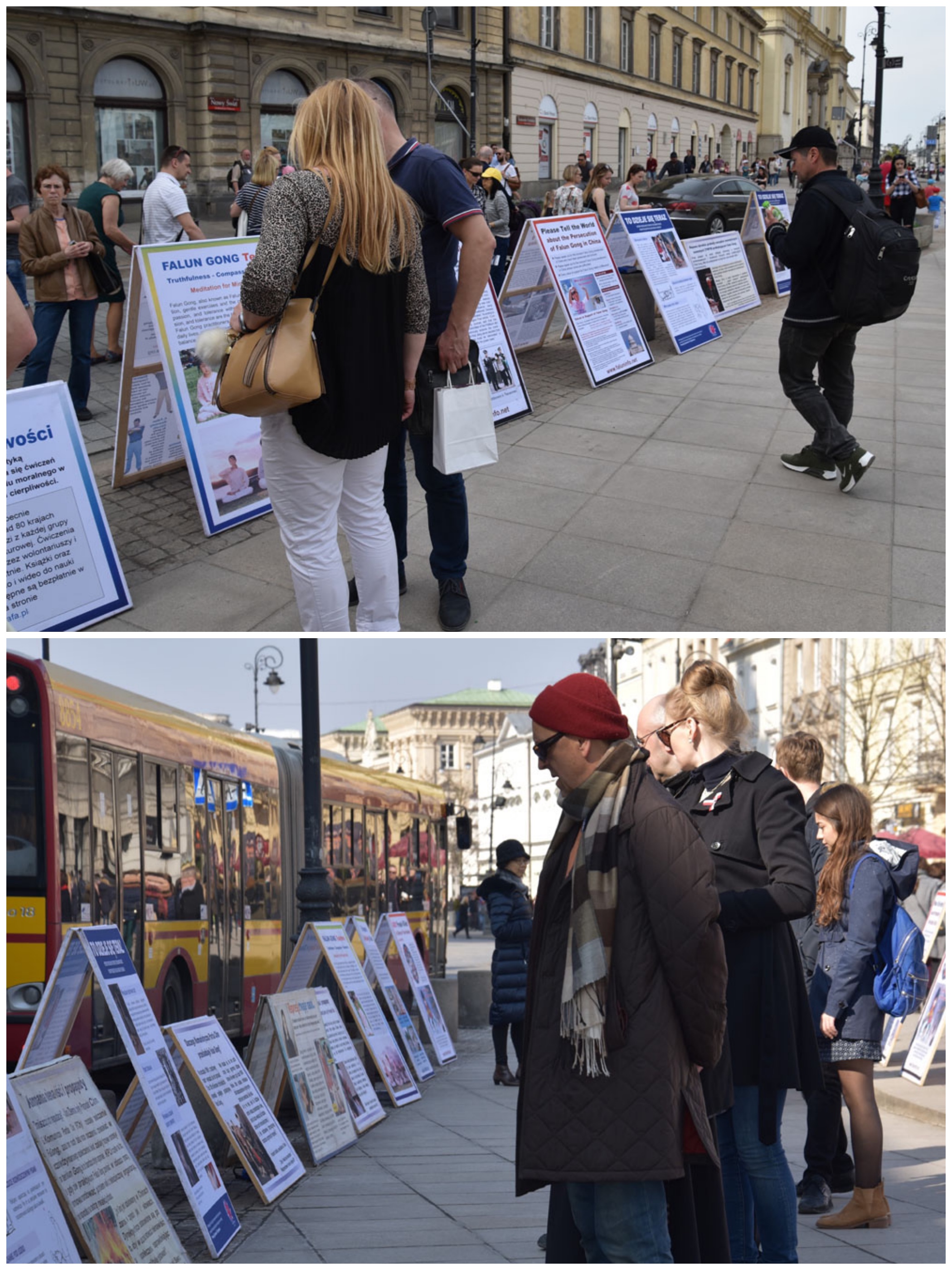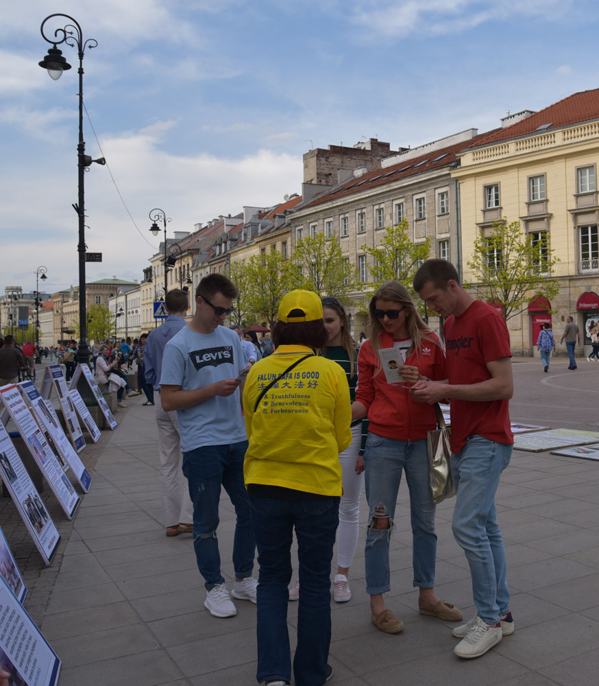 【明慧网二零一八年四月十八日】从二零一八年三月下旬开始波兰气候明显转暖,华沙旅游景点游人大增,市民们也纷纷走出家门踏春野游散步赏花。波兰法轮功学员每周六周日都带着中、波、英三种文字展板在华沙古城广场或哥白尼塑像等不同景点介绍法轮功,征签反对中共对法轮功的迫害,受到波兰市民和游人们的真诚欢迎和支持。