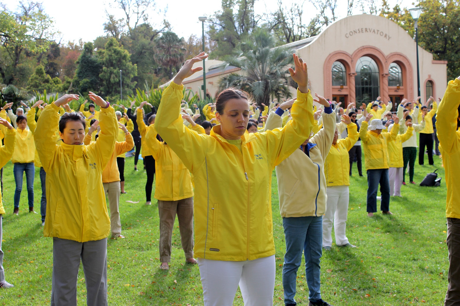四月的一个下午来了两位年轻人,交谈中得知她们是大陆过来参加佛教庆典活动的佛教徒。在“法轮大法好 真善忍好”展板前停了下来,学员问她:“知道法轮功是佛家高德修炼大法吗?”她们摇头表示:“不清楚,以为就是气功。啊,原来‘真、善、忍’就是指法轮功啊!‘真善忍’这三个字、念起来就感觉有很深刻的内涵呢!你们也有打坐吗?两本《转法轮》封面为什么不一样呢?”