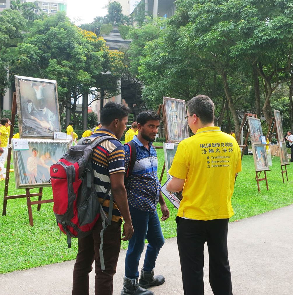 一位从德国多特蒙德(Dortmund)来新加坡大学进行短期交流的先生说,当他看到学员们正在炼功的场面,就马上走过来,因为他在德国接触过法轮功学员。他说:“他们在多特蒙德的几个大学里演示功法、发放资料,他们坚持不懈地向当地学生讲述法轮功真相,获得了很好的反响。”“可以说,五年前,我们那里很少有人知道法轮功,他们就这样每天让两、三个人知道真相,然后扩散开来。看似缓慢,但是一直都在持续,现在越来越多的人了解了在中国发生的迫害。”他表示非常佩服这些法轮功学员。