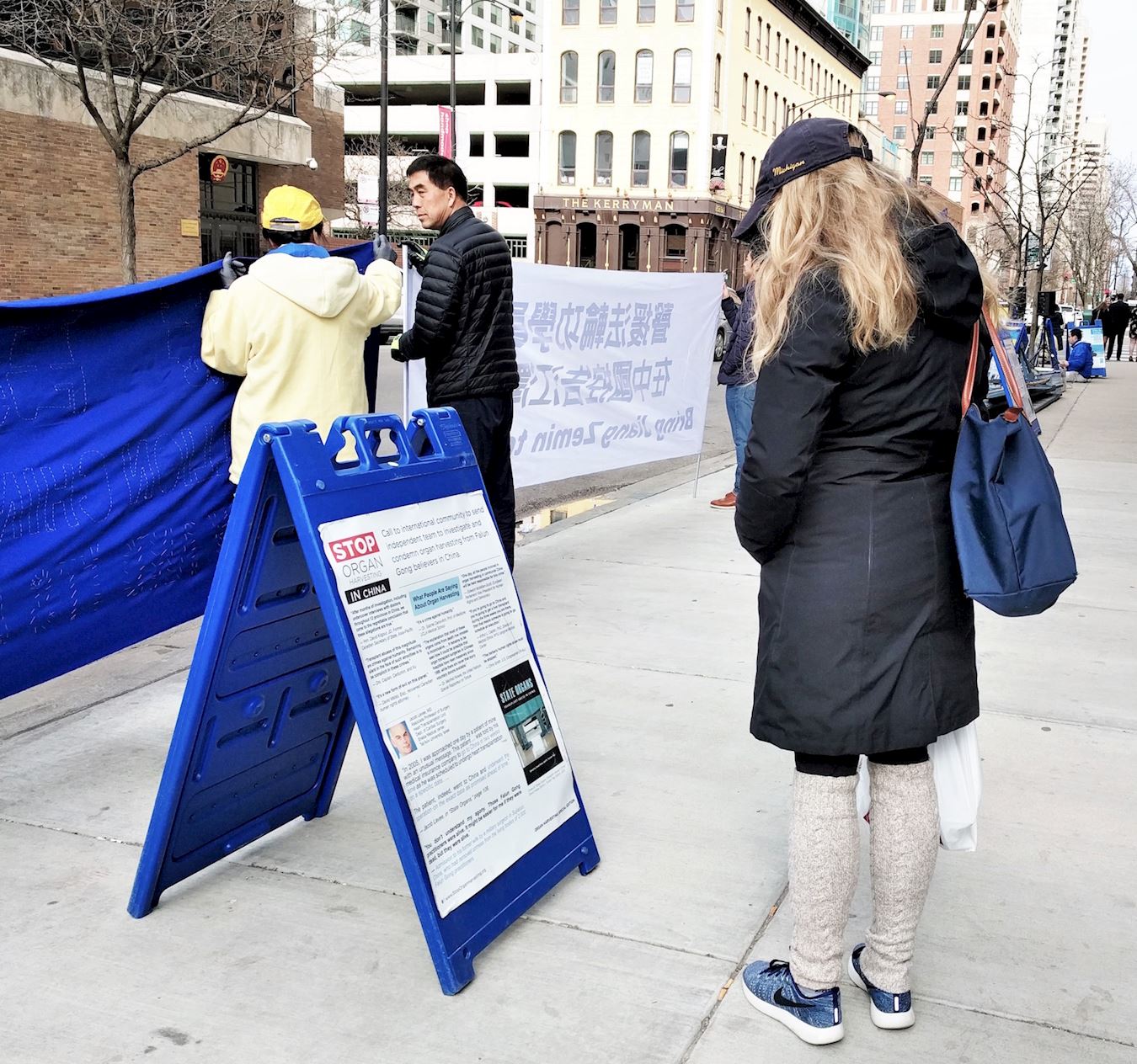 一位瑞士女游客说,几年前她在苏黎世已经在“制止中共强摘器官”征签表上签了名,之后没听见任何相关的报道,以为这个罪恶已经结束了。今天她得知罪行还在继续,所以心情非常沉痛,“不仅为那些受害的人,更为这个世界失去了良知而感到悲哀!”
