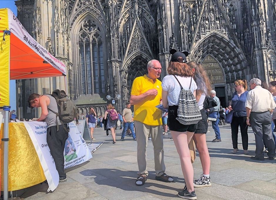 一位中学老师D.M.先生说,他对中共活摘器官的罪行有所耳闻。但令他费解的是,为什么这样惨烈的人权侵害任其存在十多年?十几亿中国人不反抗吗?外国政府不知道吗?法轮功学员给了他有关“四·二五”、“七·二零”、天安门“自焚”伪案等德文真相资料后,告诉他:中共为制造迫害的理由,在千方百计构陷污蔑法轮功,并把这些谎言灌输给中国人。所以很多中国人不知道真相,显得很麻木。在国际上,中共利用谎言掩盖真相的同时,用经济利益胁迫外国政府不许发声。