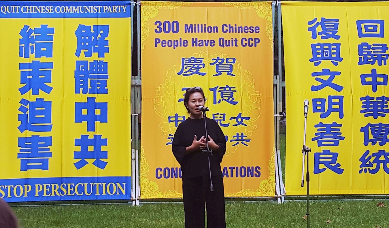 ![]() 图3:温哥华《大纪元时报》代表何坚在发言中表示,法轮功修炼者从未停下传播真相和希望的善行义举 |