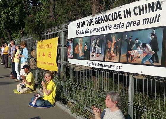 四月二十五日,罗马尼亚法轮功学员来到中国驻罗马尼亚使馆前举行活动,纪念“四•二五”和平上访十九周年,抗议中共对法轮功持续了十九年的残酷迫害。