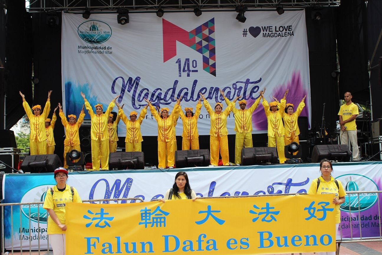 【明慧网二零一八年四月六日】二零一八年三月二十日至二十五日,秘鲁首都利马海滨马格达莱纳区(MAGDALENA DEL MAR)政府举行“马格达莱纳艺术节”(MAGDALENARTE)十四周年活动,法轮功学员应邀参加。
