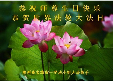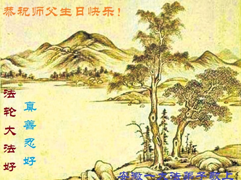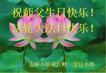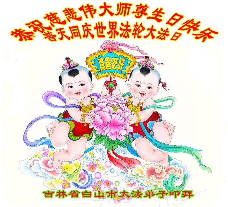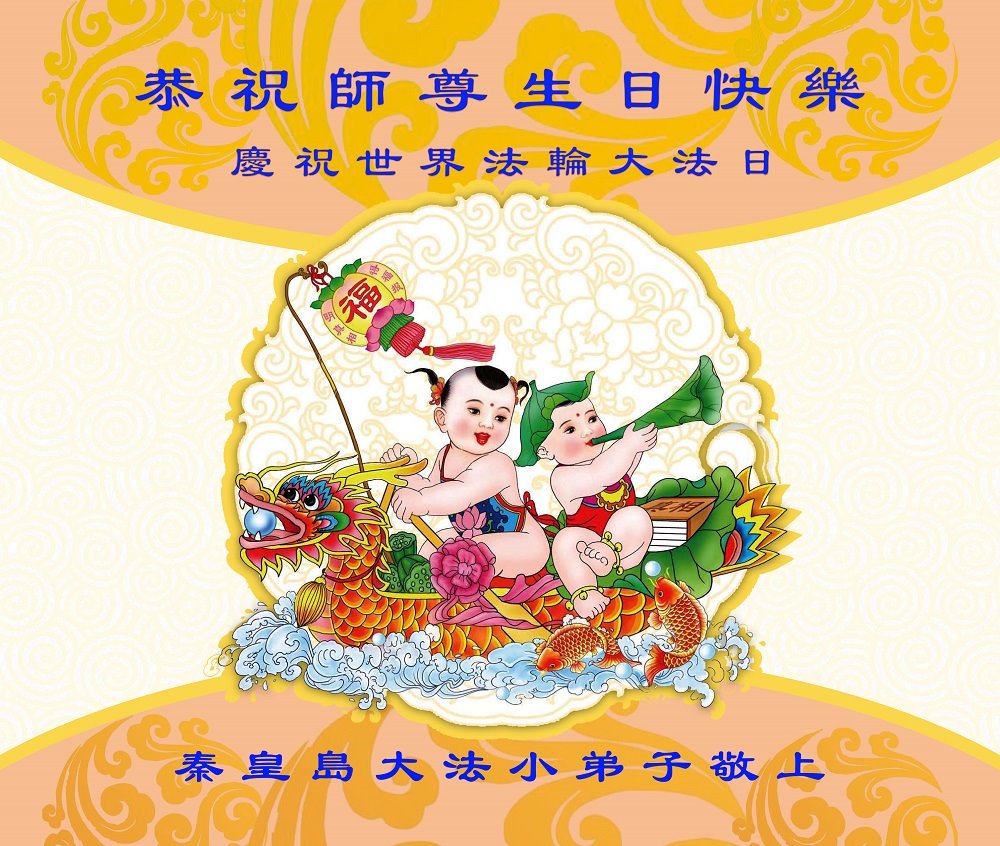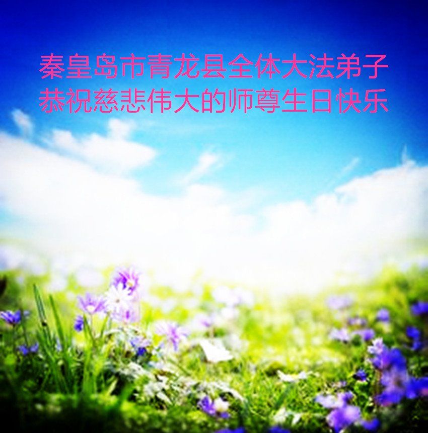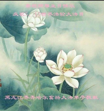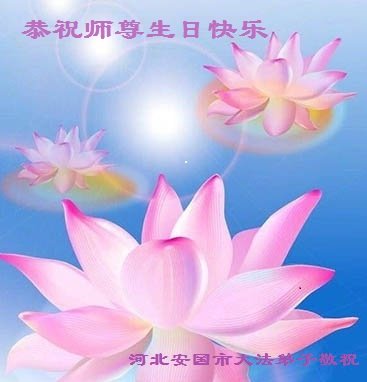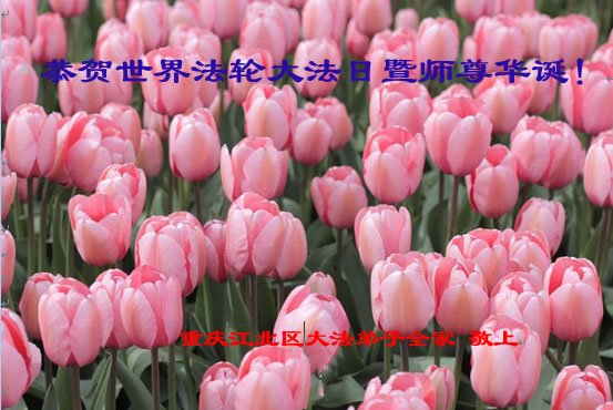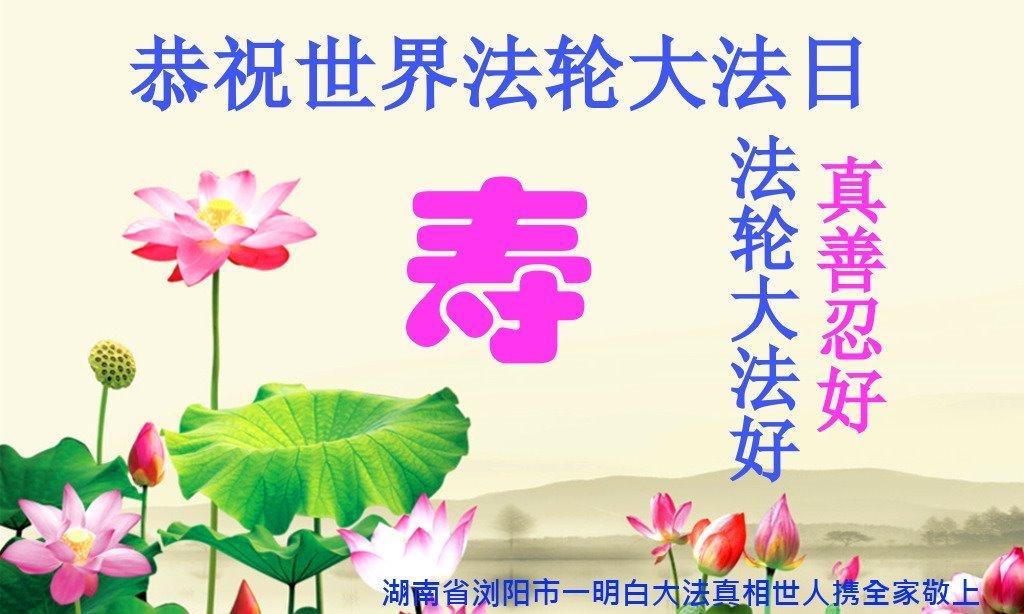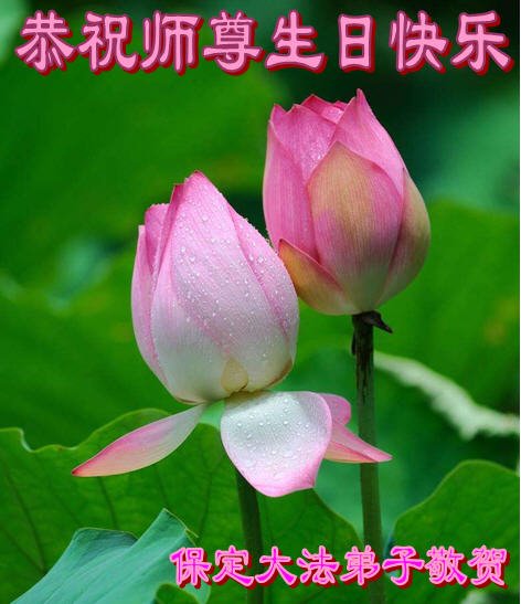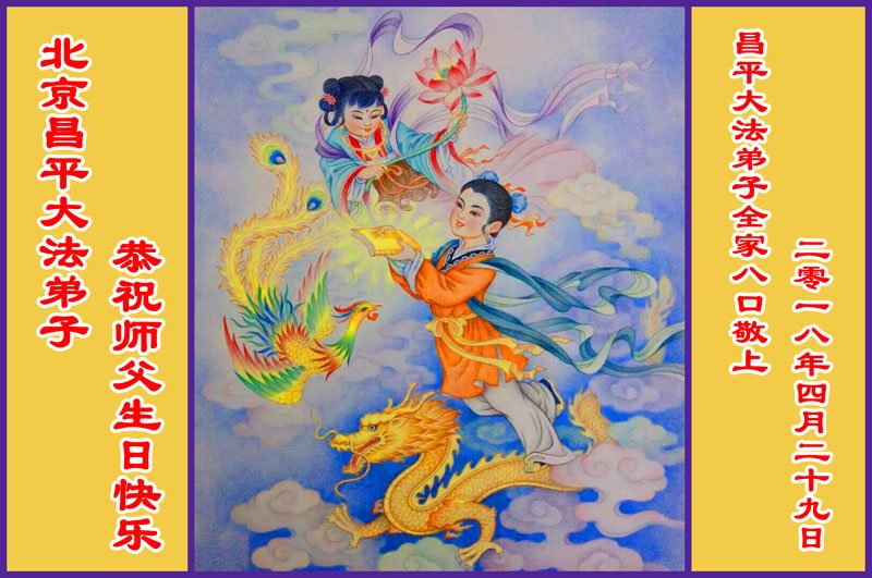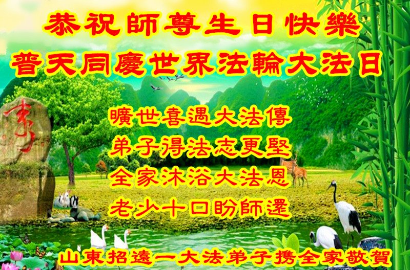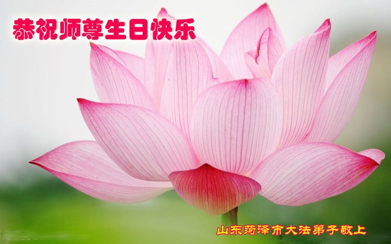 师尊您好。我代表全家六口人(其中一人不修炼,其他人都开始看书)恭祝伟大的师尊生日快乐!我一定会加倍努力,做好大法弟子应该做好的三件事来报答师尊对我们全家的救度之恩。