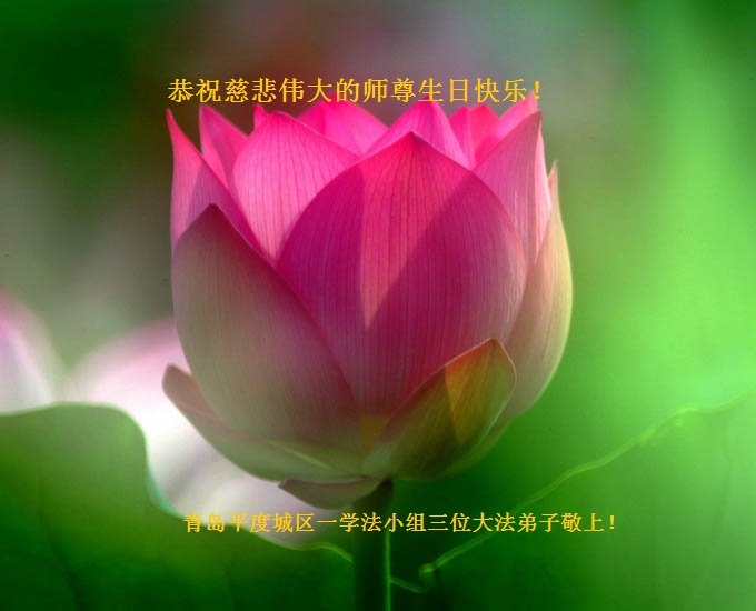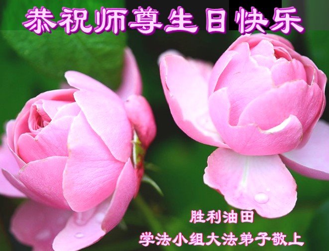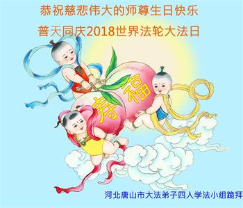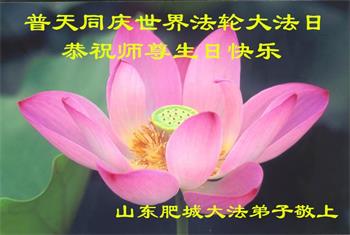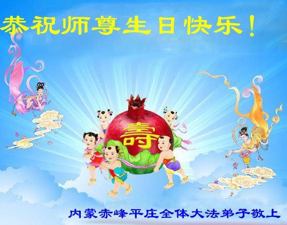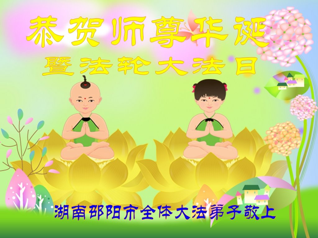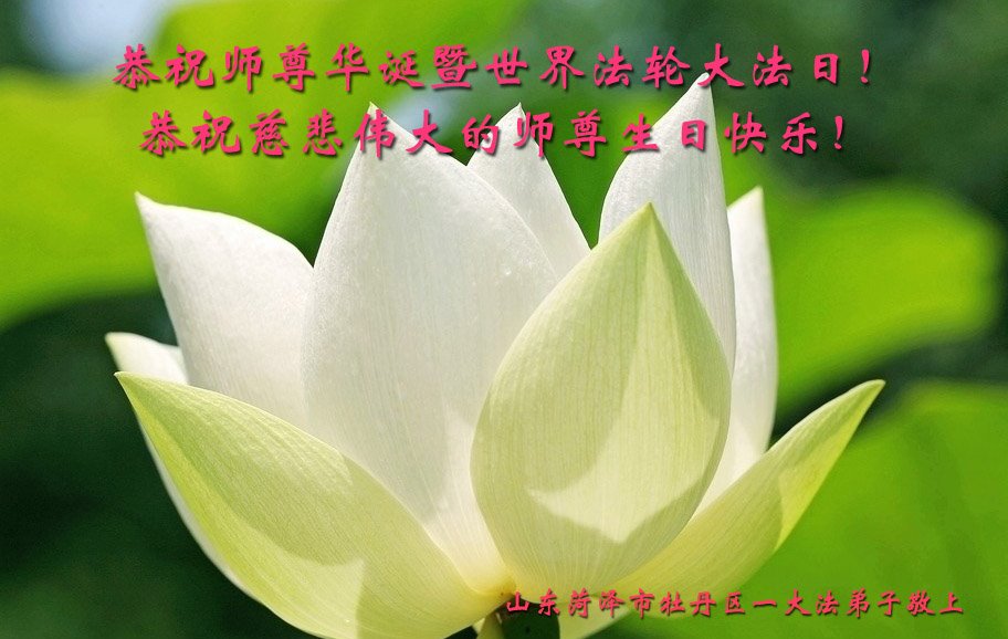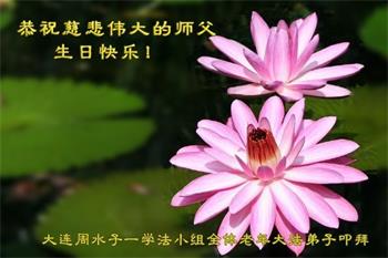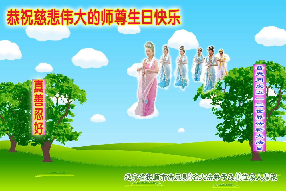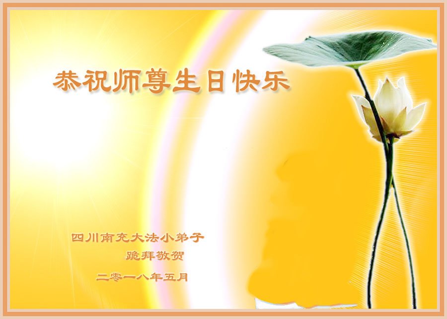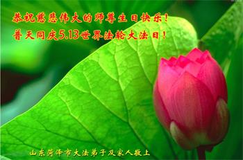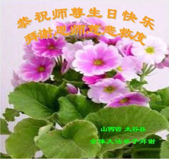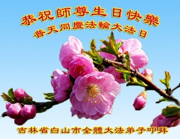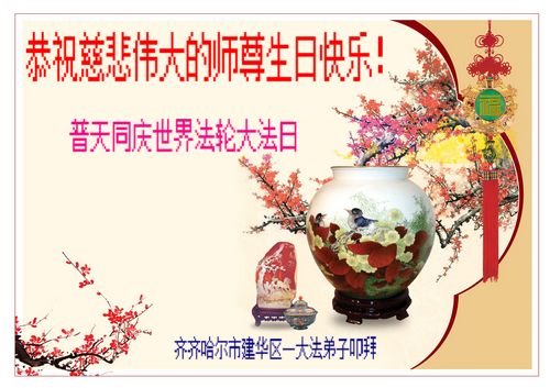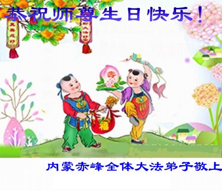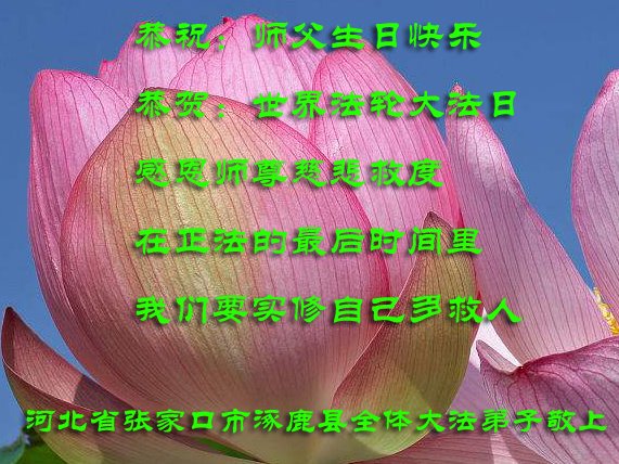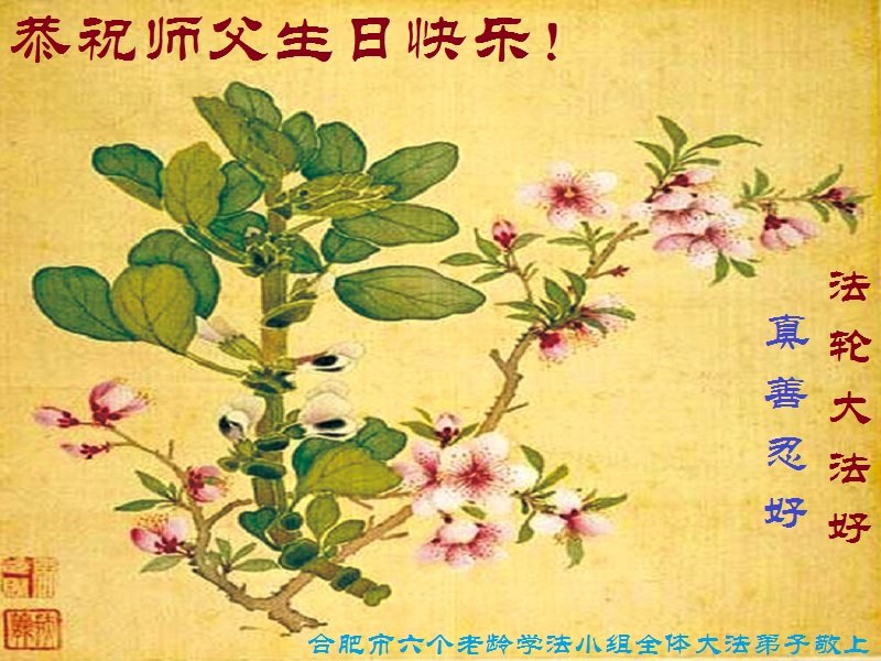 师尊您好。我代表全家六口人(其中一人不修炼,其他人都开始看书)恭祝伟大的师尊生日快乐!我一定会加倍努力,做好大法弟子应该做好的三件事来报答师尊对我们全家的救度之恩。