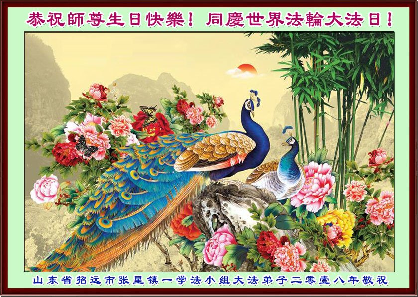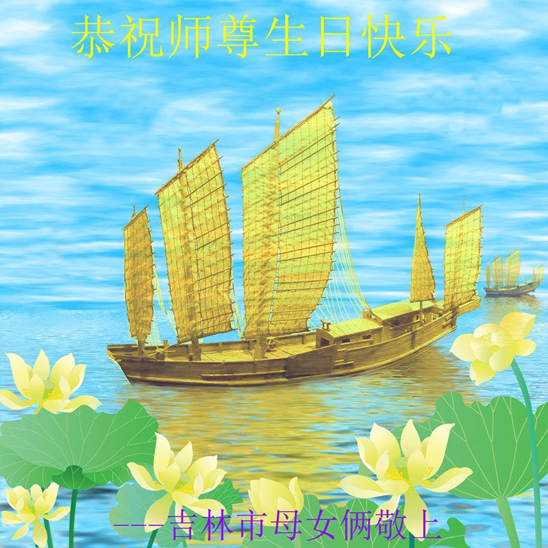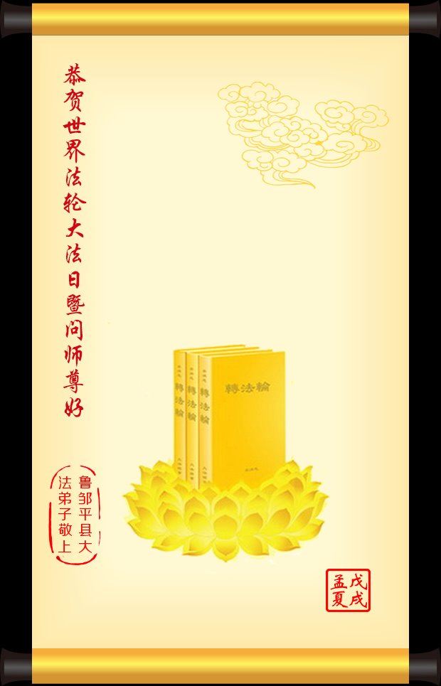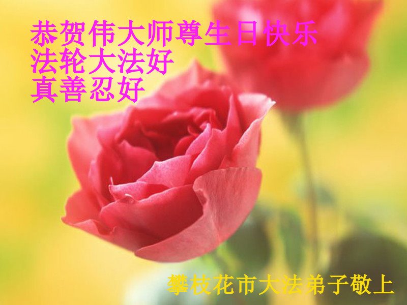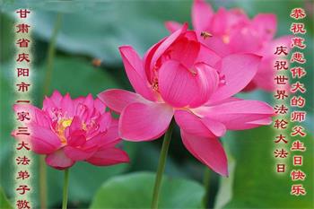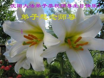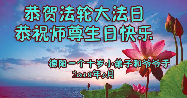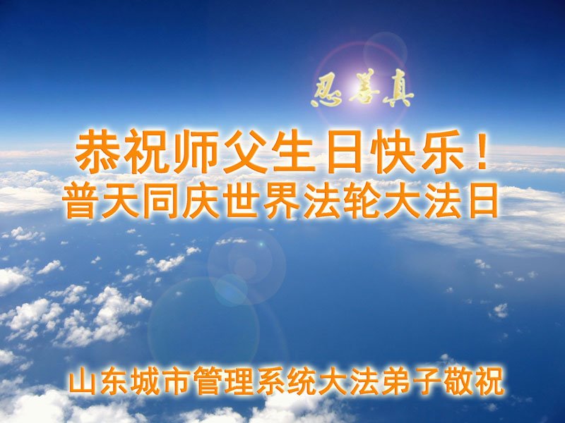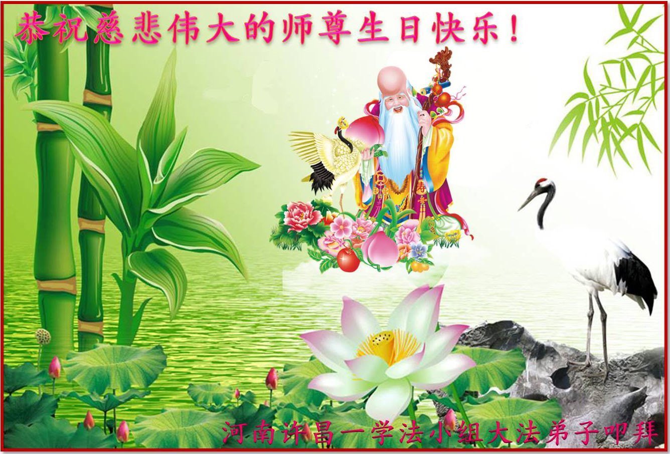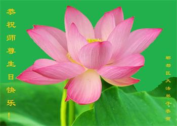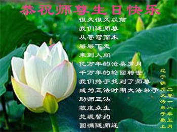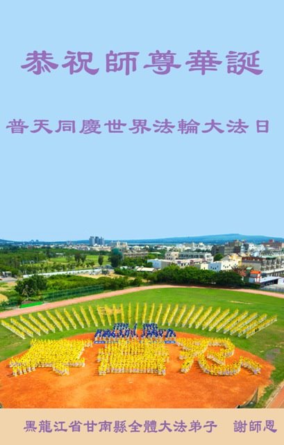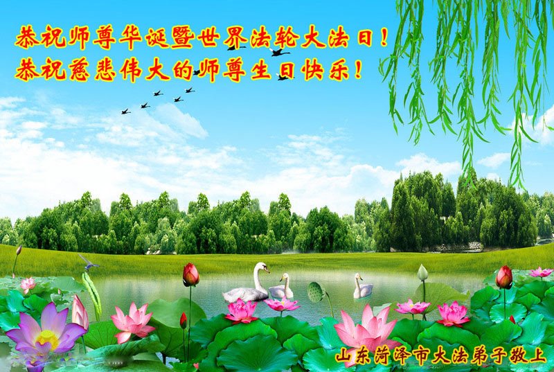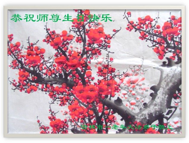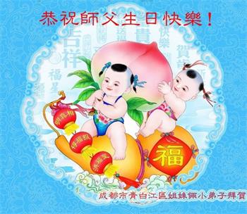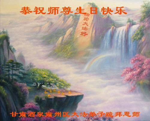 师尊您好。我代表全家六口人(其中一人不修炼,其他人都开始看书)恭祝伟大的师尊生日快乐!我一定会加倍努力,做好大法弟子应该做好的三件事来报答师尊对我们全家的救度之恩。