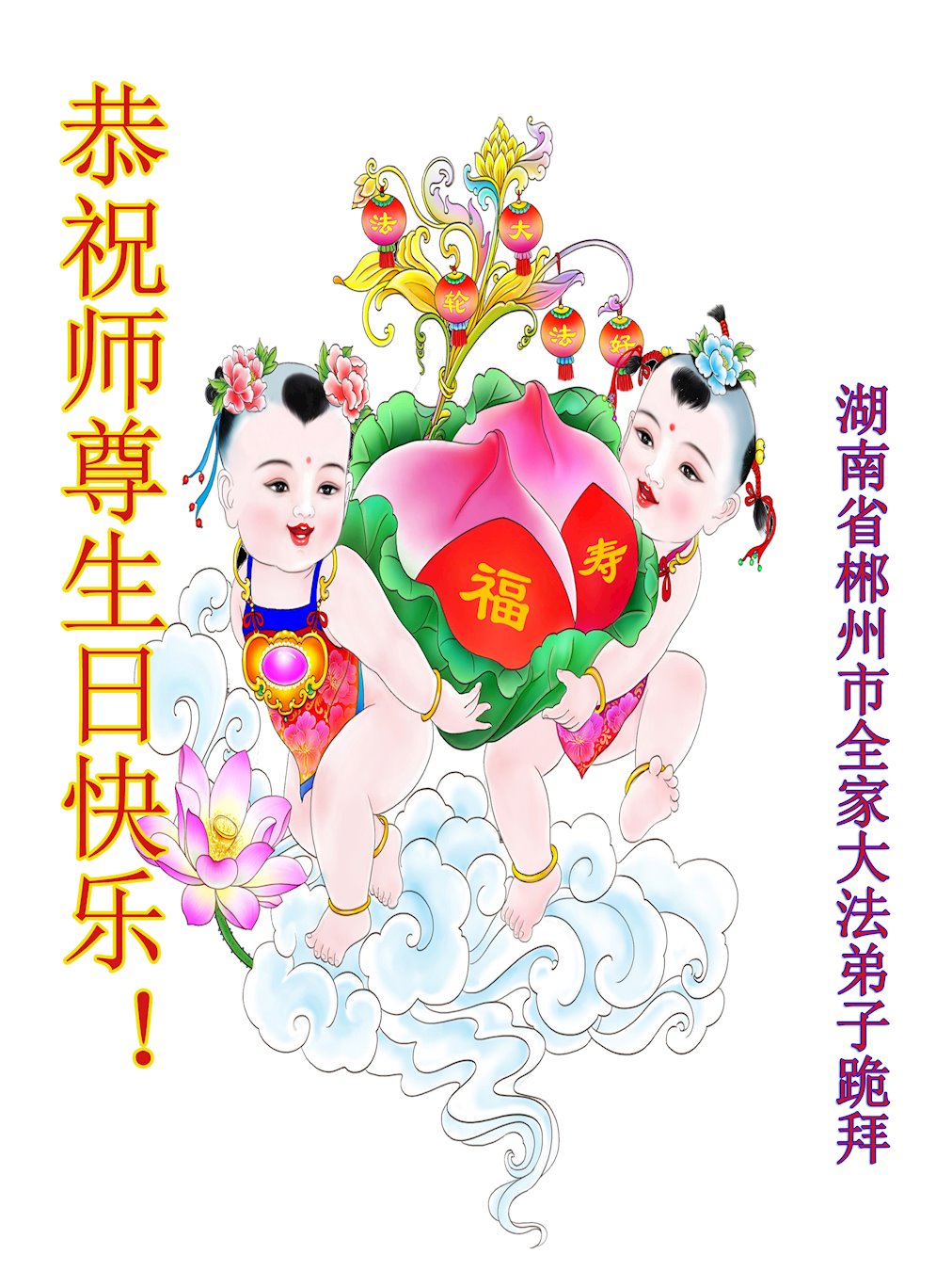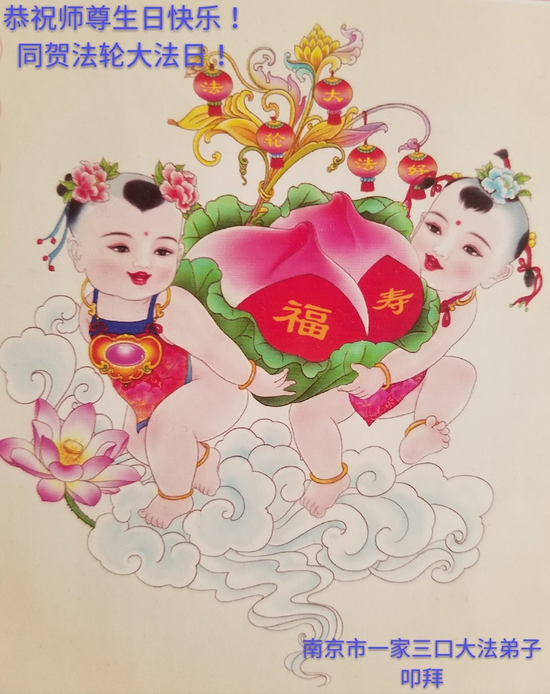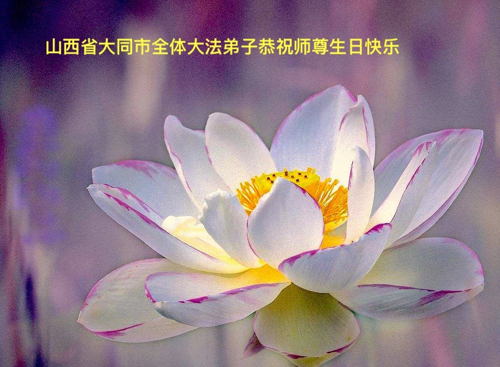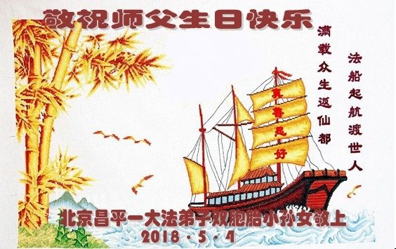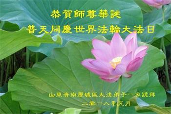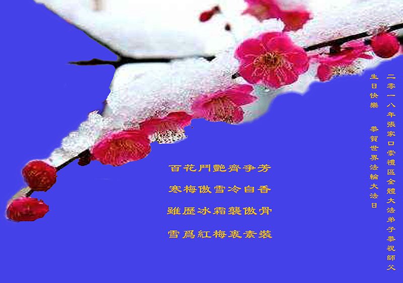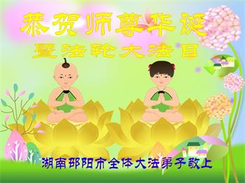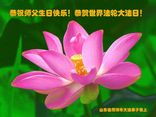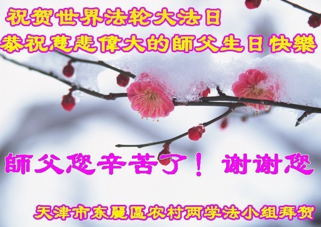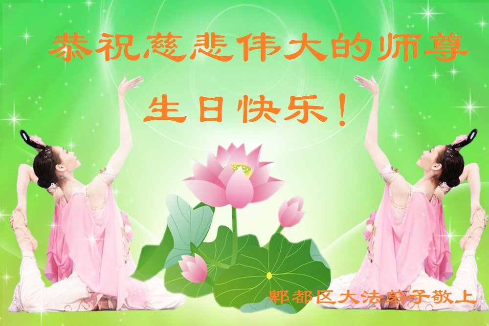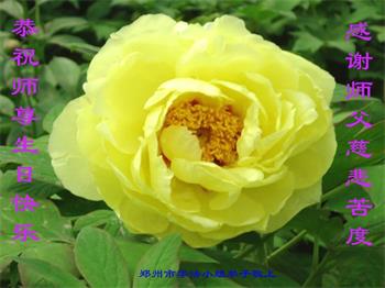 师尊您好。我代表全家六口人(其中一人不修炼,其他人都开始看书)恭祝伟大的师尊生日快乐!我一定会加倍努力,做好大法弟子应该做好的三件事来报答师尊对我们全家的救度之恩。