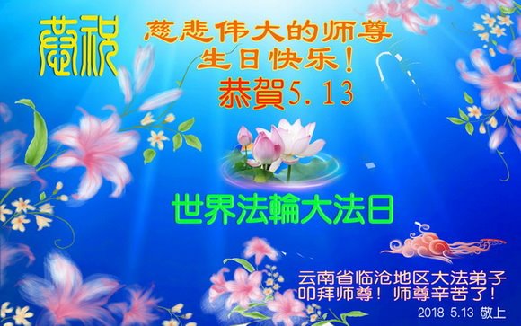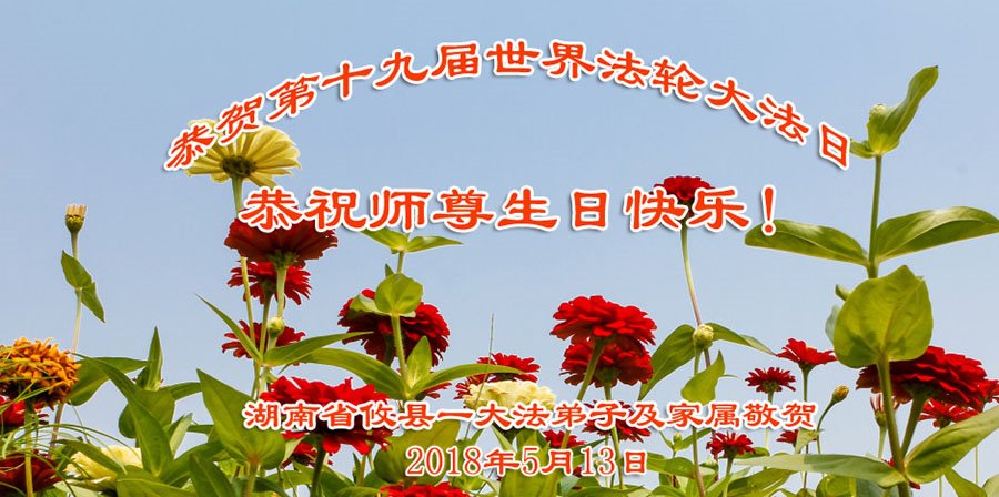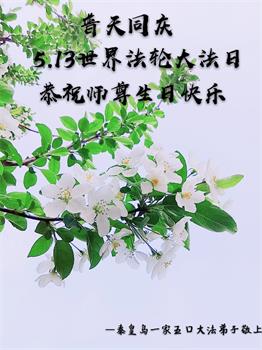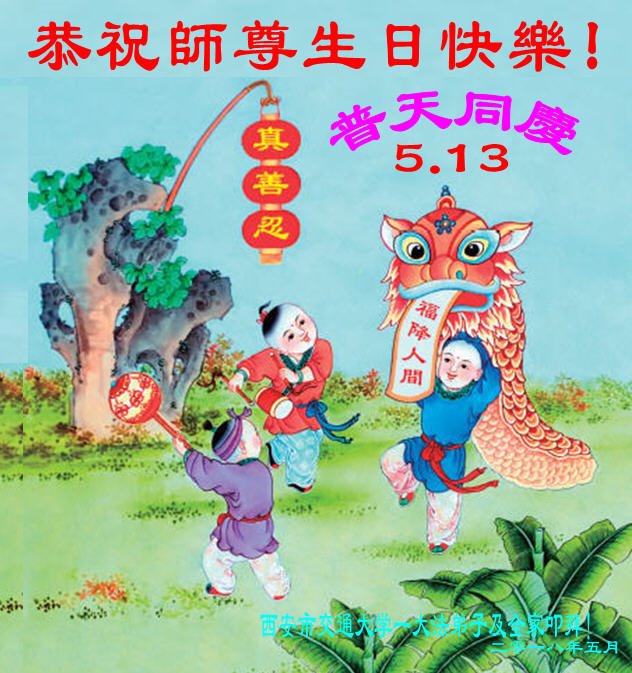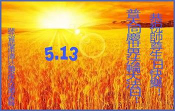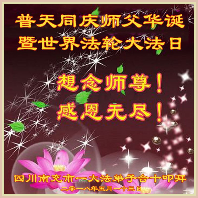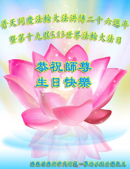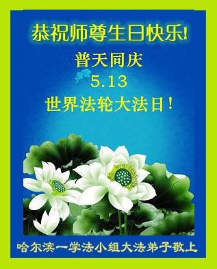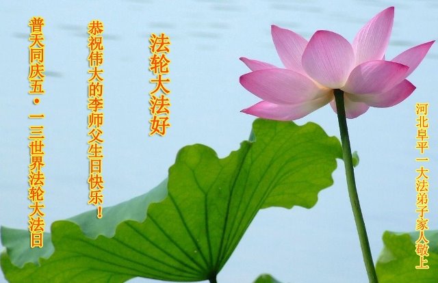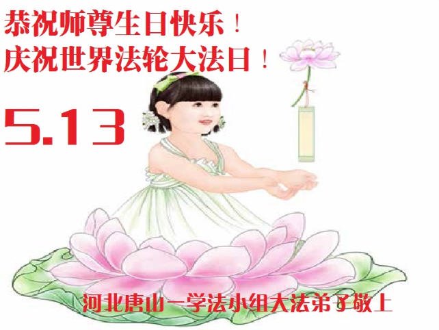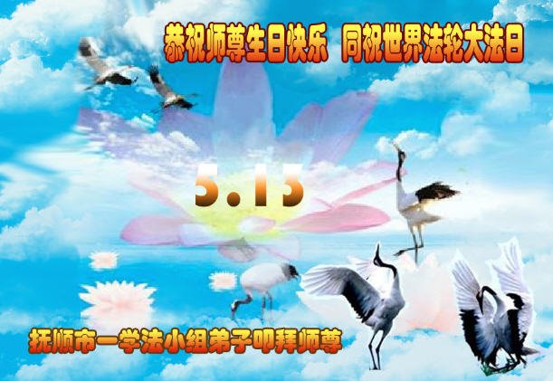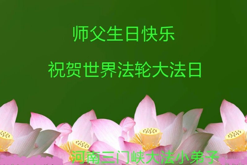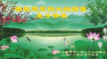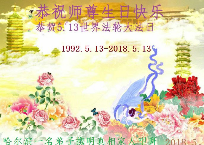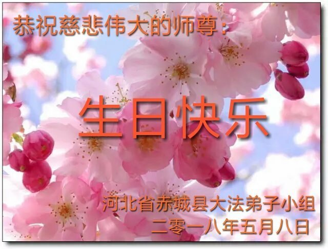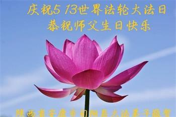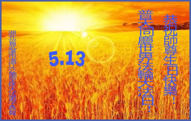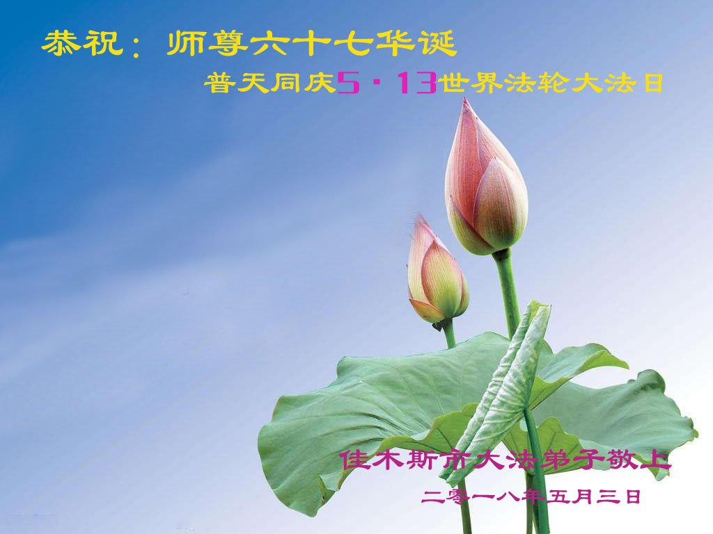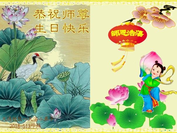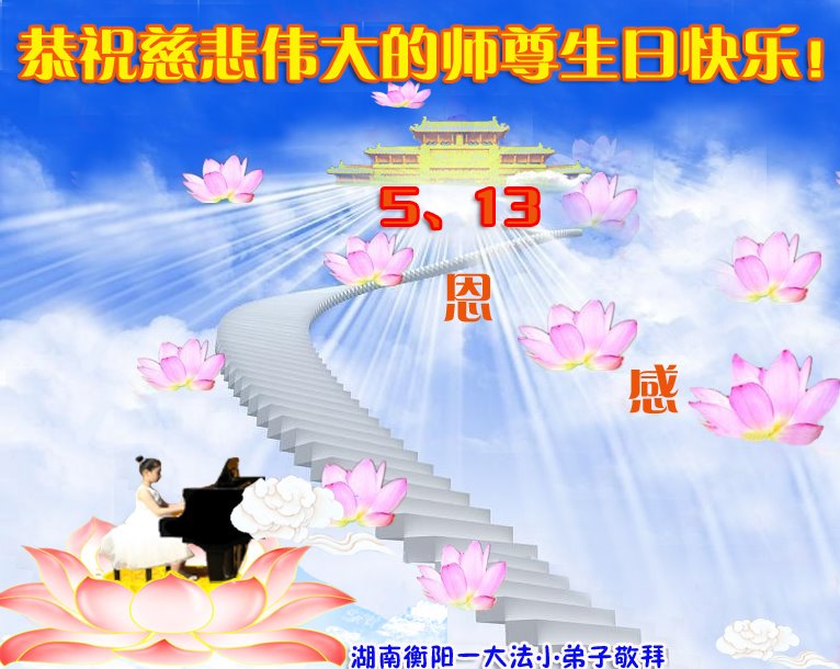我们衷心恭祝李大师生日快乐!暨“五一三”世界法轮大法日。法轮大法是教人向善的正法正道。但在国内却无端遭受了近十九年迫害。祝愿法轮大法在新的一年更好的弘扬世界。我们相信正义的力量一定会终止这场迫害,让国内的大法弟子有更好的学法炼功环境,希望更多的世人明白大法真相,接受大法,有更好的未来,这一天也很快会到来。