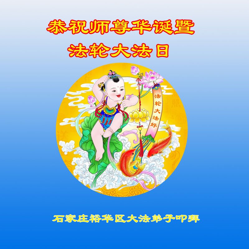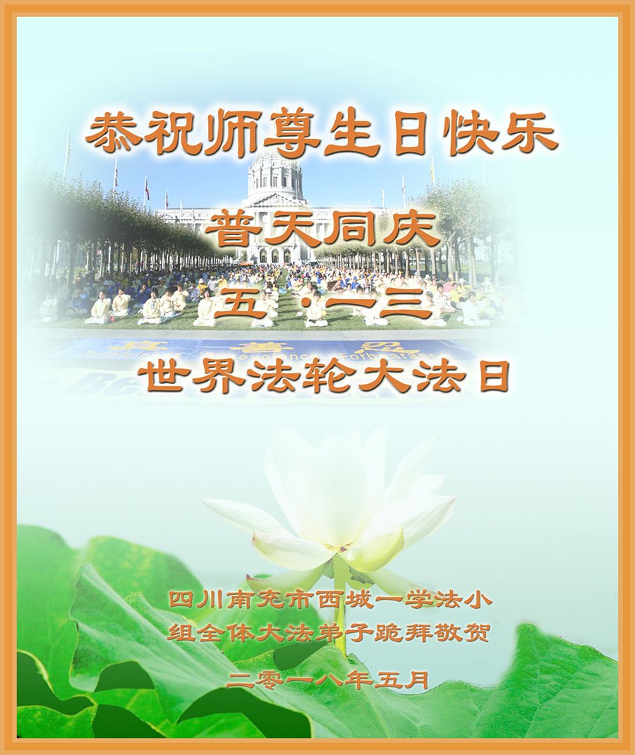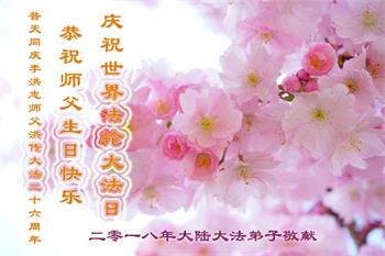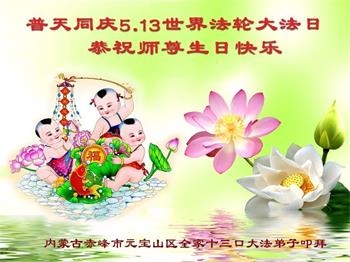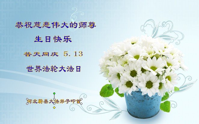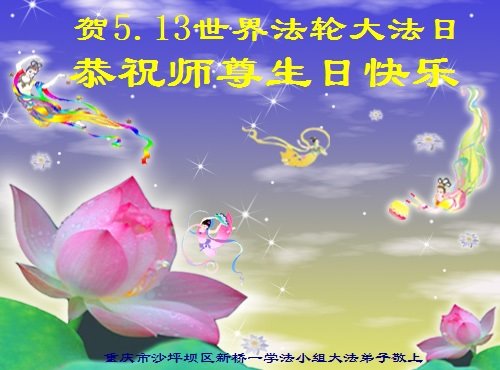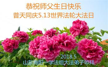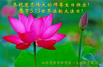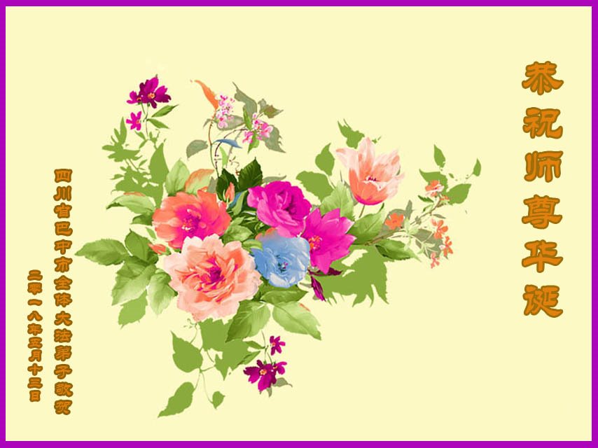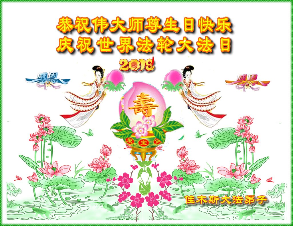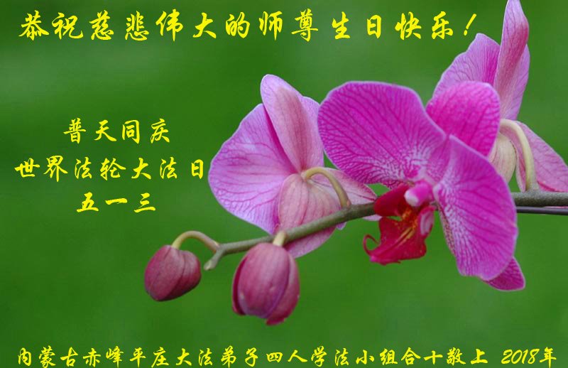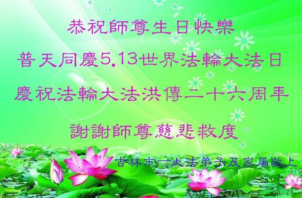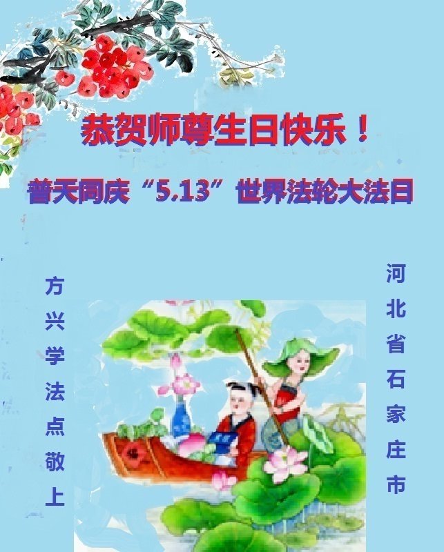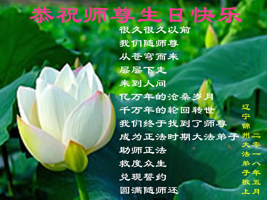 我们衷心恭祝李大师生日快乐!暨“五一三”世界法轮大法日。法轮大法是教人向善的正法正道。但在国内却无端遭受了近十九年迫害。祝愿法轮大法在新的一年更好的弘扬世界。我们相信正义的力量一定会终止这场迫害,让国内的大法弟子有更好的学法炼功环境,希望更多的世人明白大法真相,接受大法,有更好的未来,这一天也很快会到来。