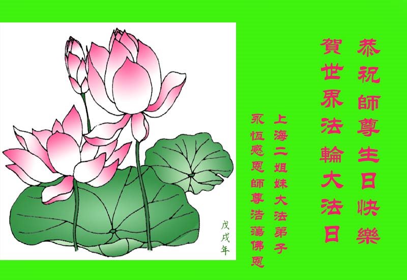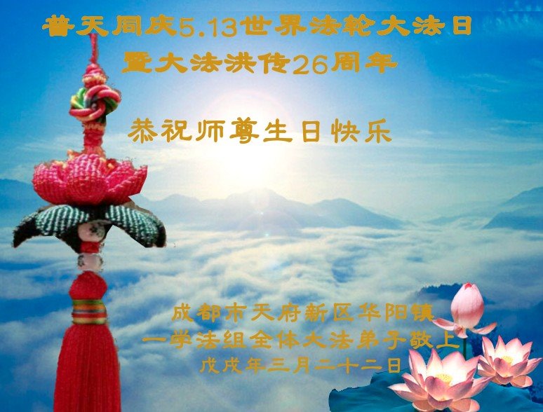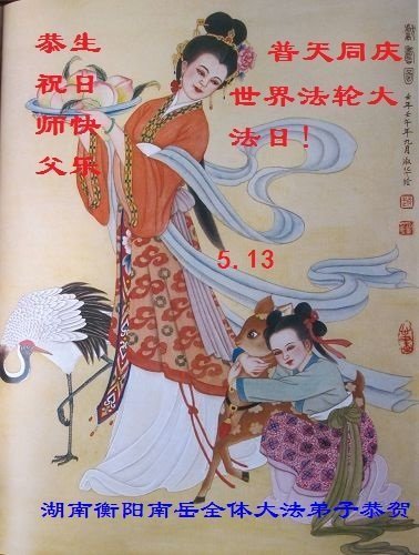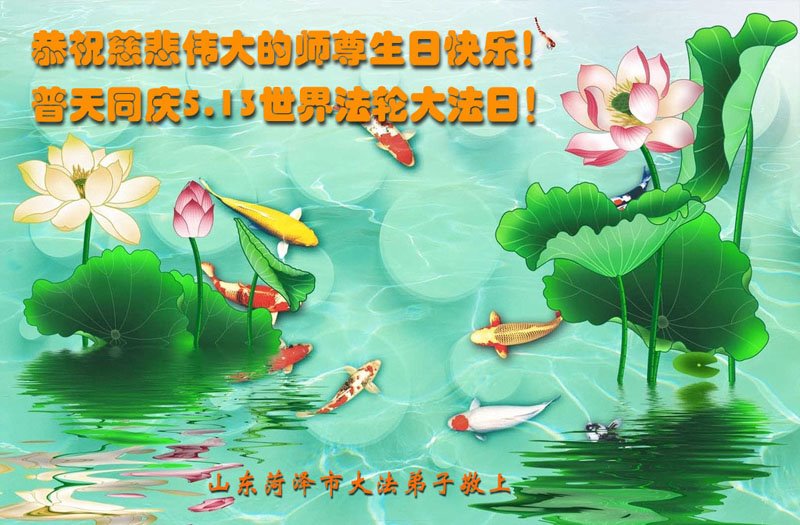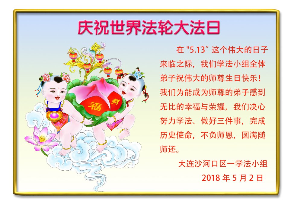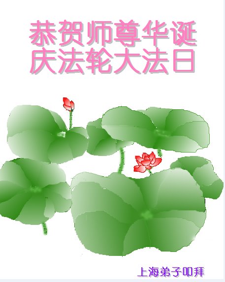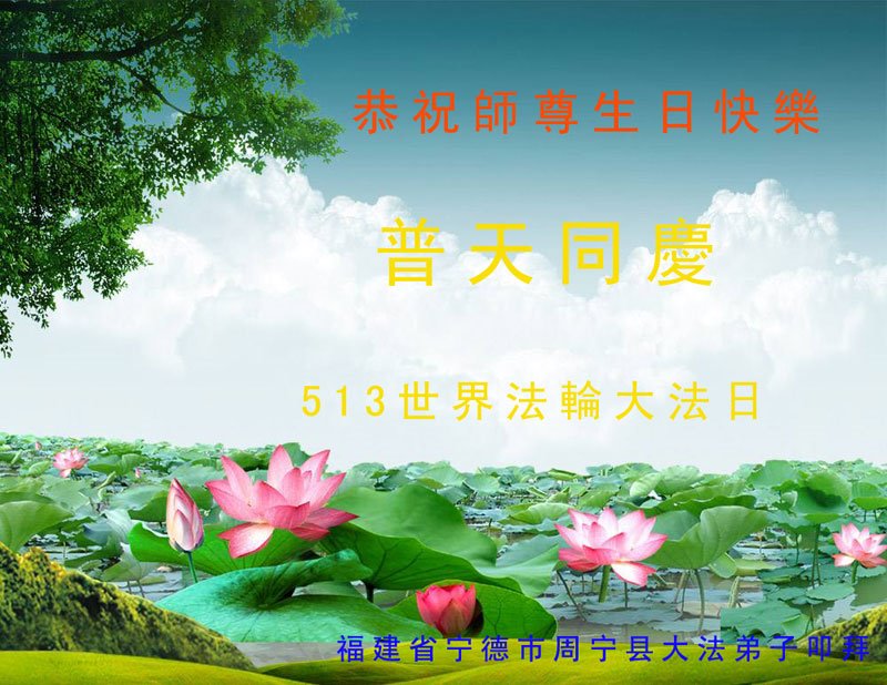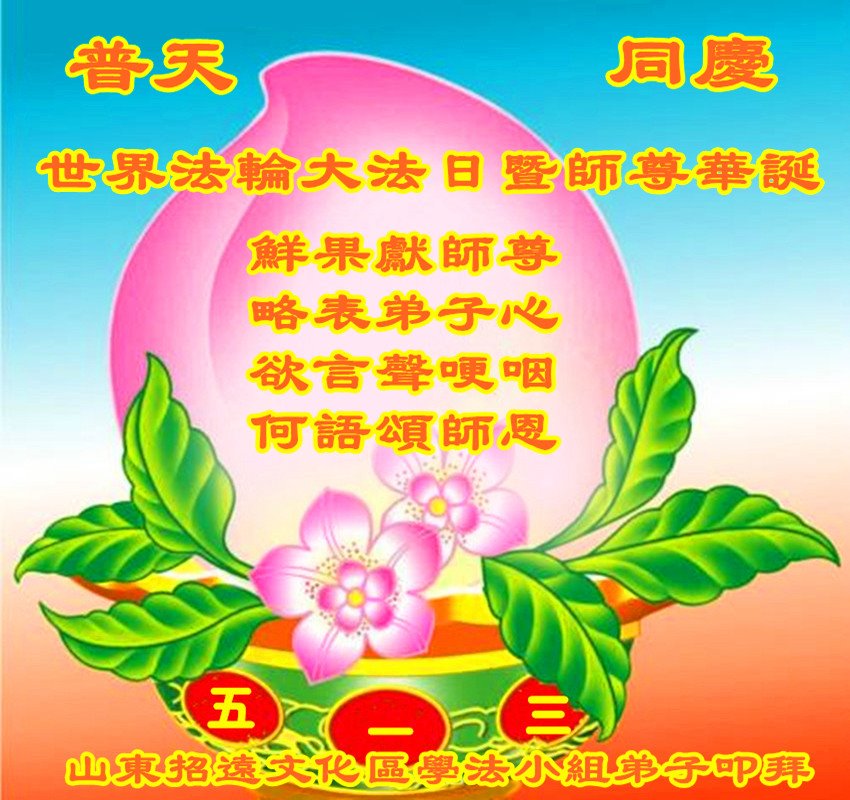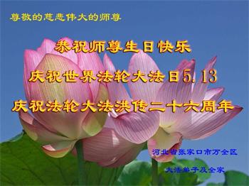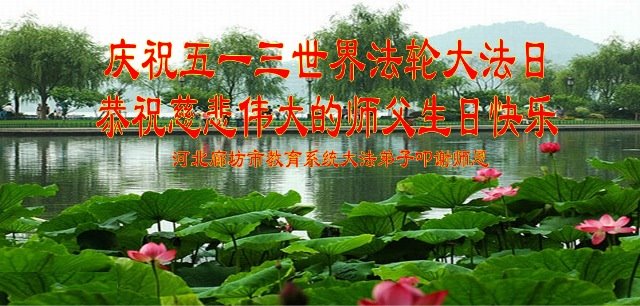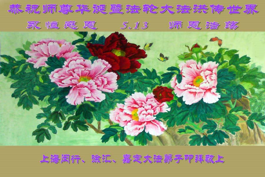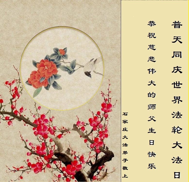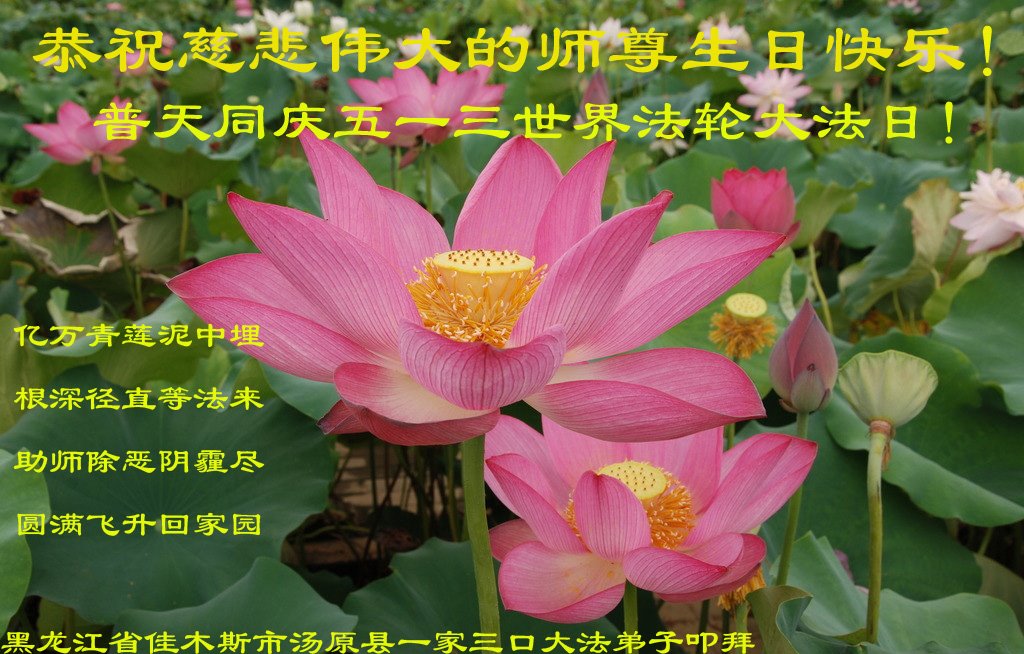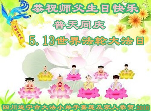 我们衷心恭祝李大师生日快乐!暨“五一三”世界法轮大法日。法轮大法是教人向善的正法正道。但在国内却无端遭受了近十九年迫害。祝愿法轮大法在新的一年更好的弘扬世界。我们相信正义的力量一定会终止这场迫害,让国内的大法弟子有更好的学法炼功环境,希望更多的世人明白大法真相,接受大法,有更好的未来,这一天也很快会到来。