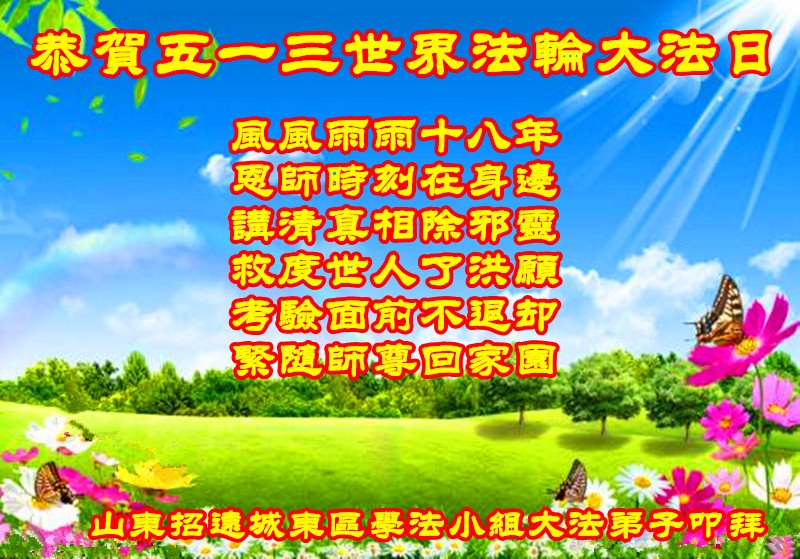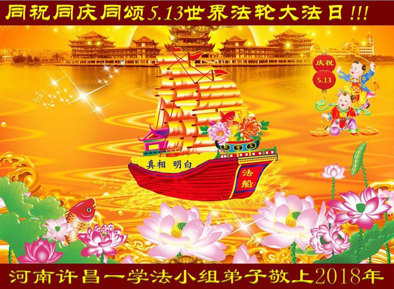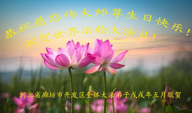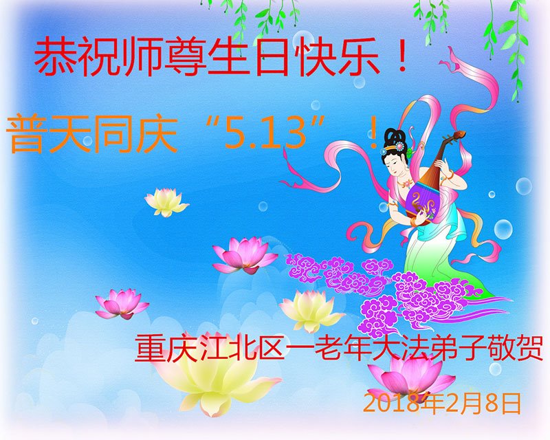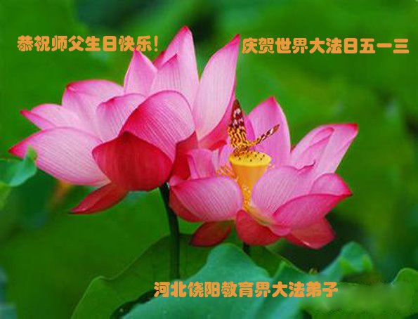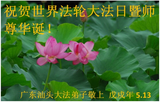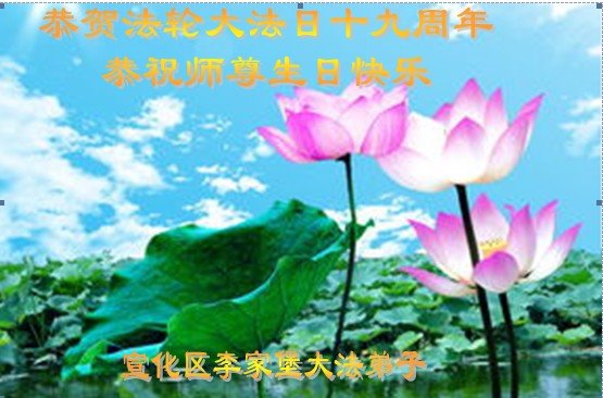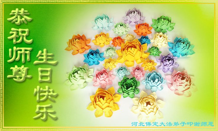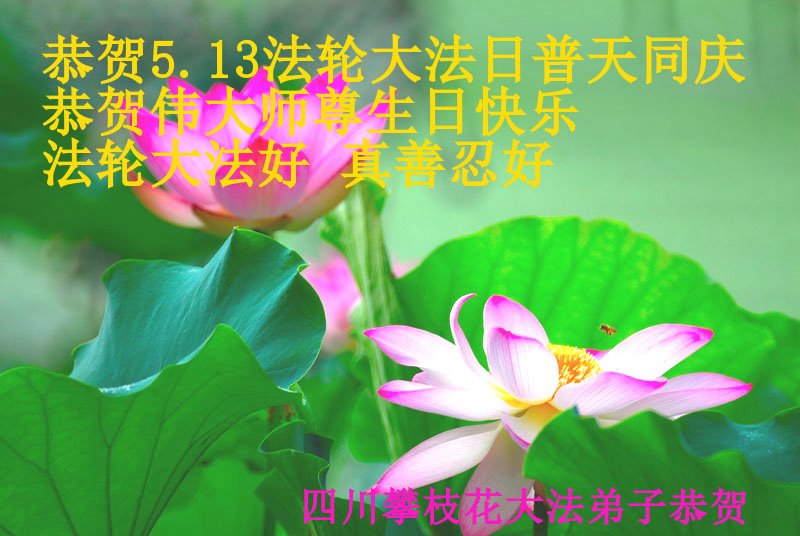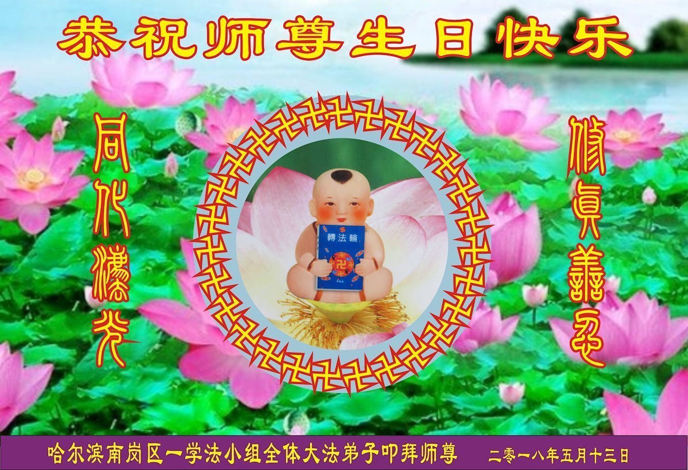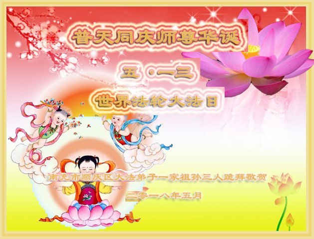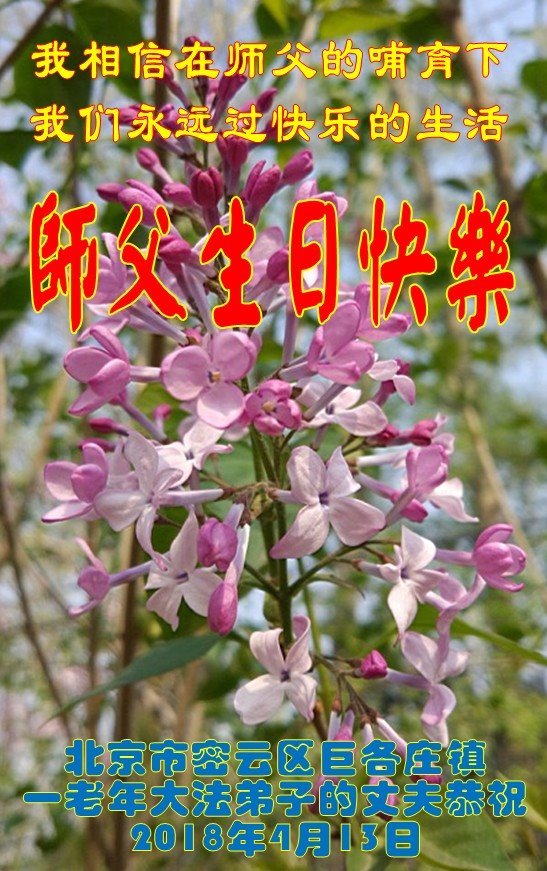 我们衷心恭祝李大师生日快乐!暨“五一三”世界法轮大法日。法轮大法是教人向善的正法正道。但在国内却无端遭受了近十九年迫害。祝愿法轮大法在新的一年更好的弘扬世界。我们相信正义的力量一定会终止这场迫害,让国内的大法弟子有更好的学法炼功环境,希望更多的世人明白大法真相,接受大法,有更好的未来,这一天也很快会到来。
