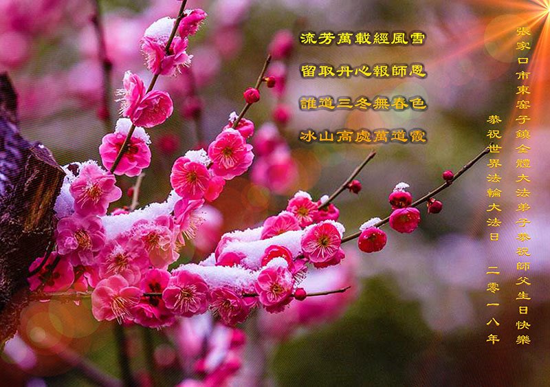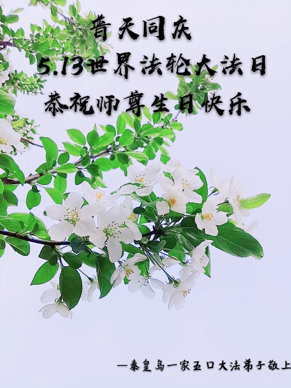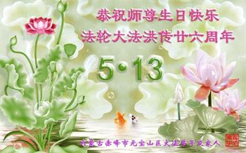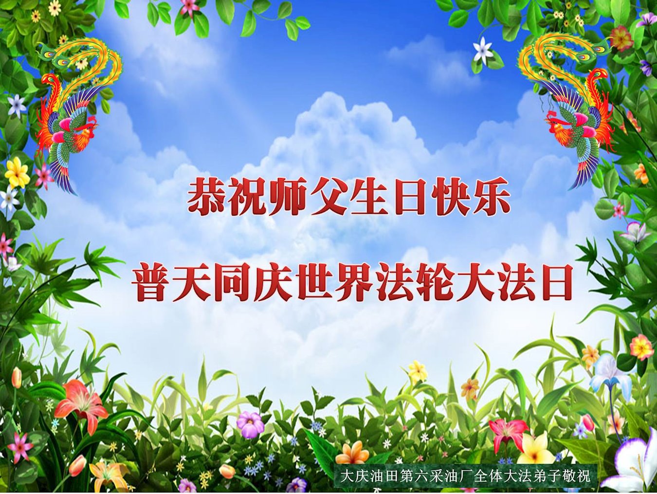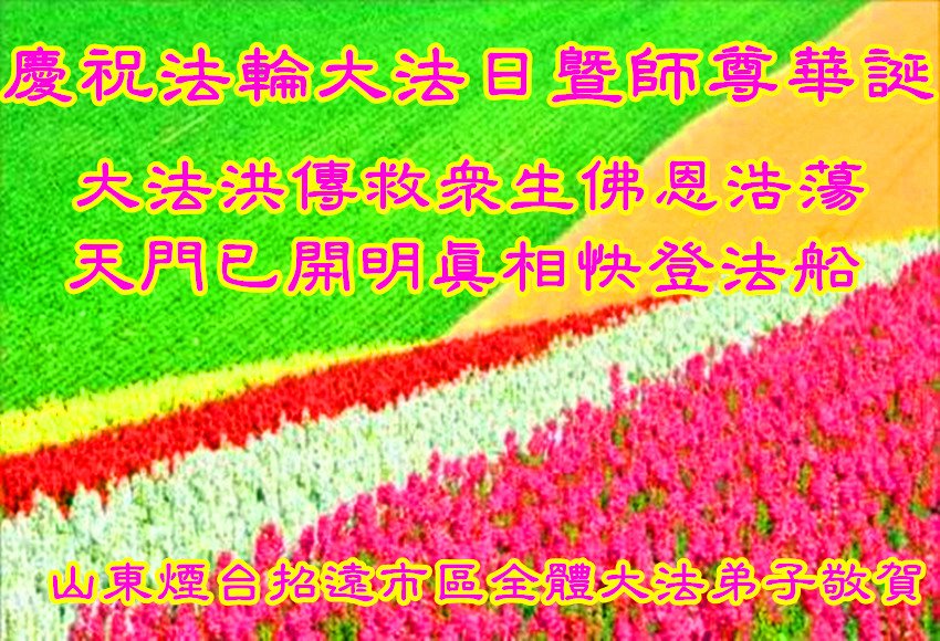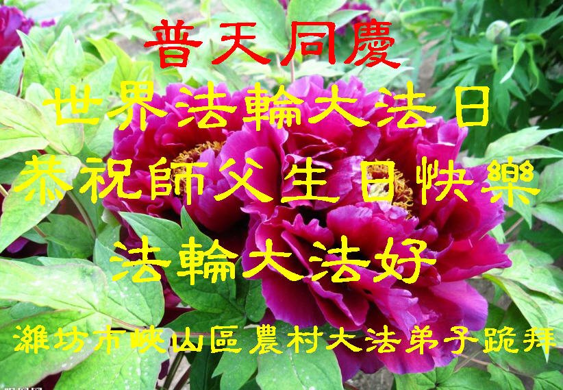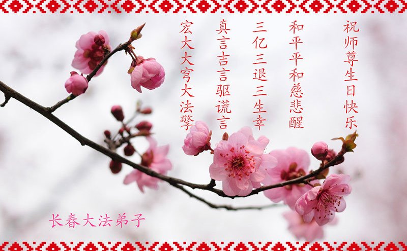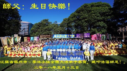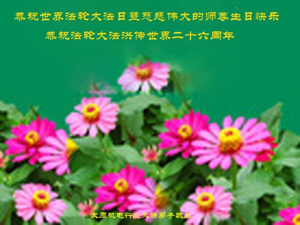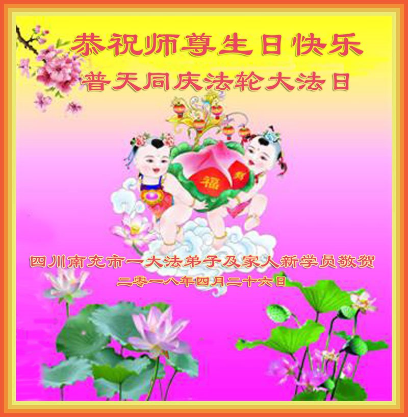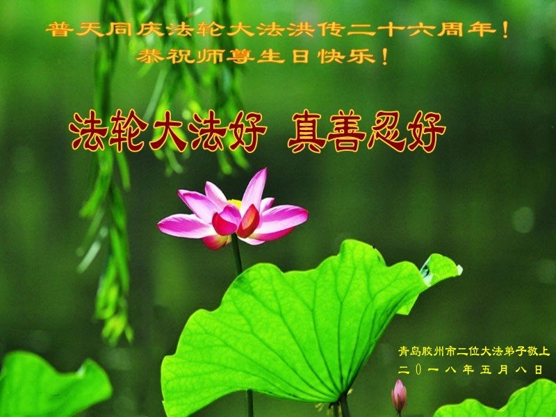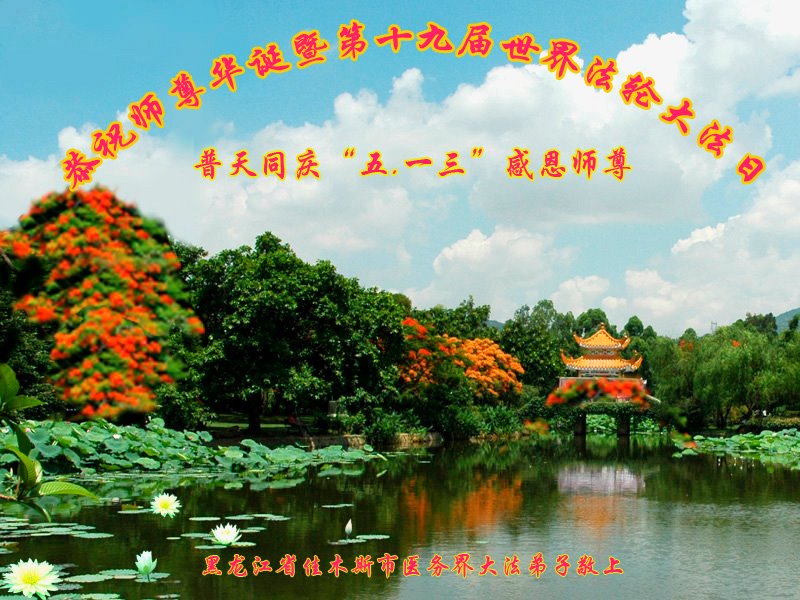 我们衷心恭祝李大师生日快乐!暨“五一三”世界法轮大法日。法轮大法是教人向善的正法正道。但在国内却无端遭受了近十九年迫害。祝愿法轮大法在新的一年更好的弘扬世界。我们相信正义的力量一定会终止这场迫害,让国内的大法弟子有更好的学法炼功环境,希望更多的世人明白大法真相,接受大法,有更好的未来,这一天也很快会到来。
