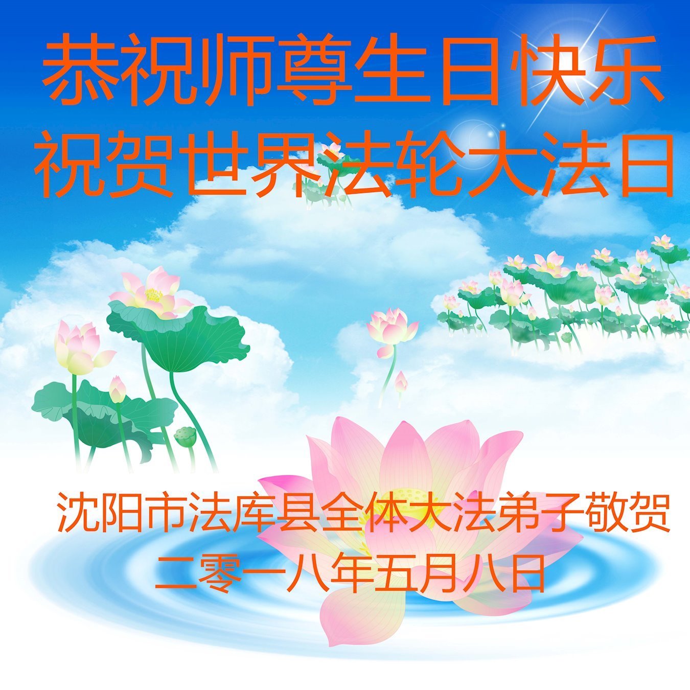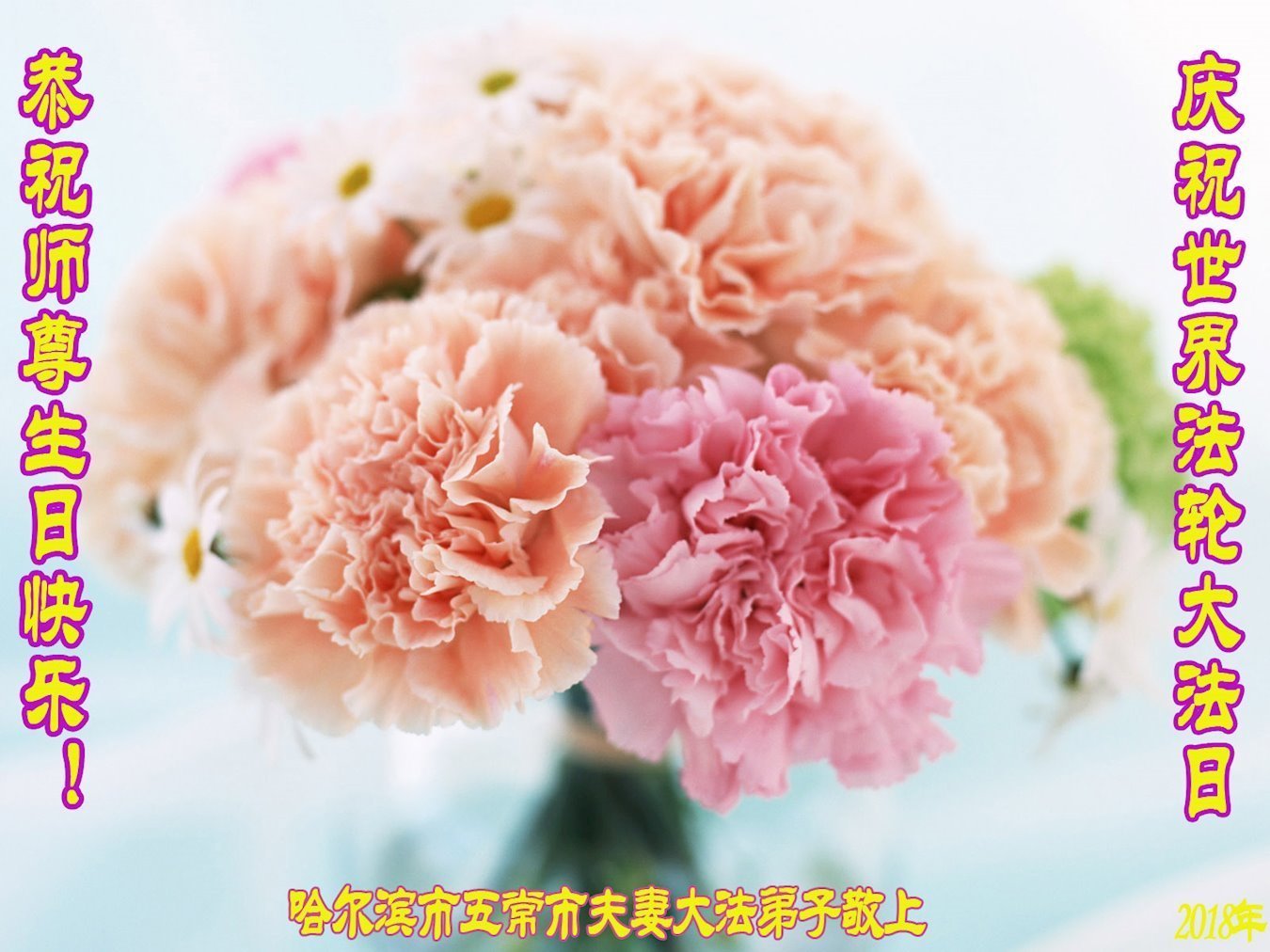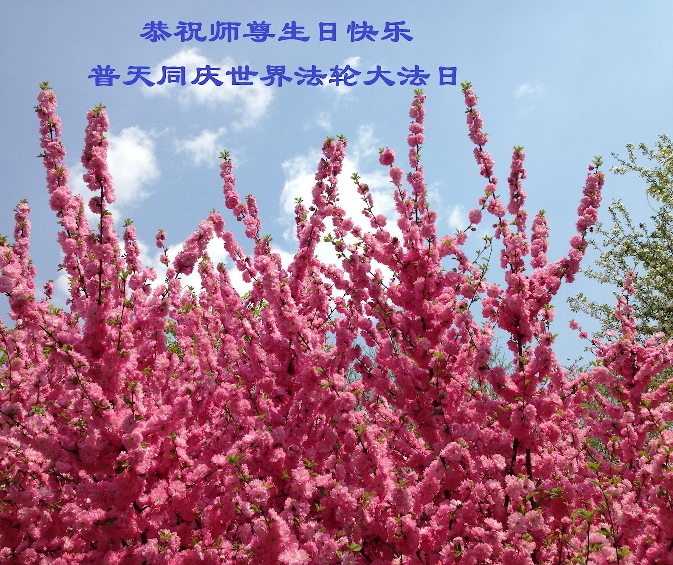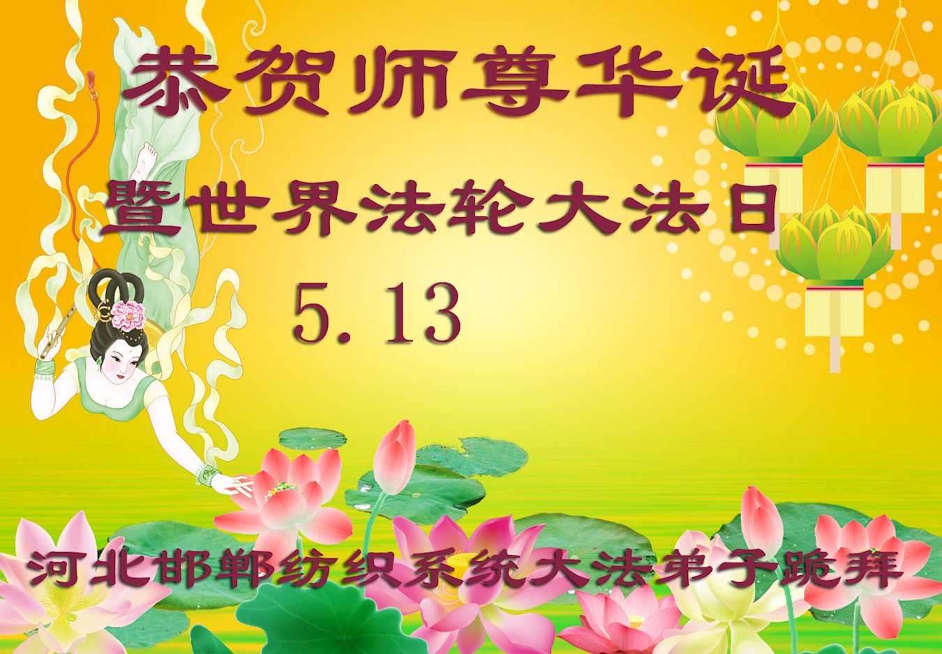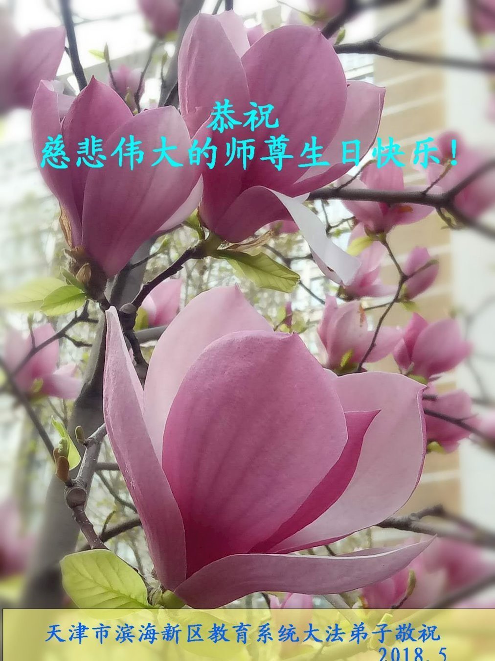 我们衷心恭祝李大师生日快乐!暨“五一三”世界法轮大法日。法轮大法是教人向善的正法正道。但在国内却无端遭受了近十九年迫害。祝愿法轮大法在新的一年更好的弘扬世界。我们相信正义的力量一定会终止这场迫害,让国内的大法弟子有更好的学法炼功环境,希望更多的世人明白大法真相,接受大法,有更好的未来,这一天也很快会到来。