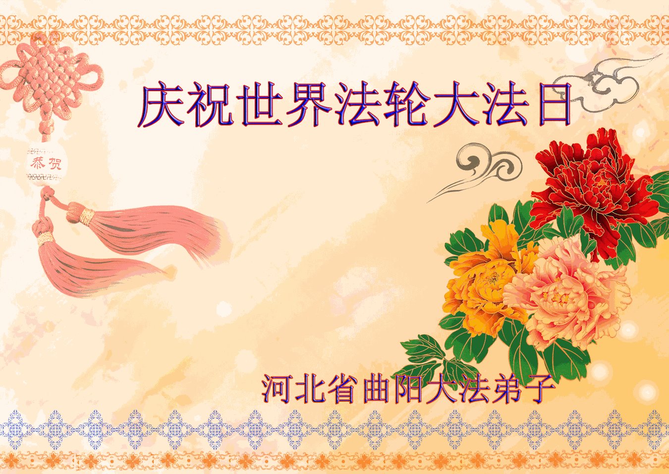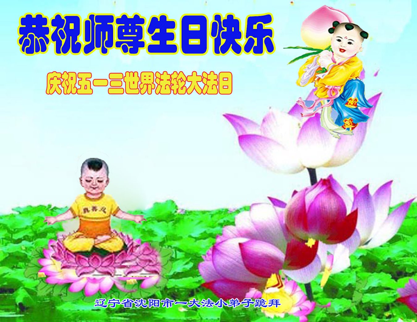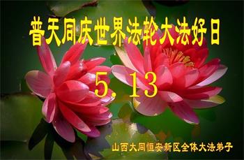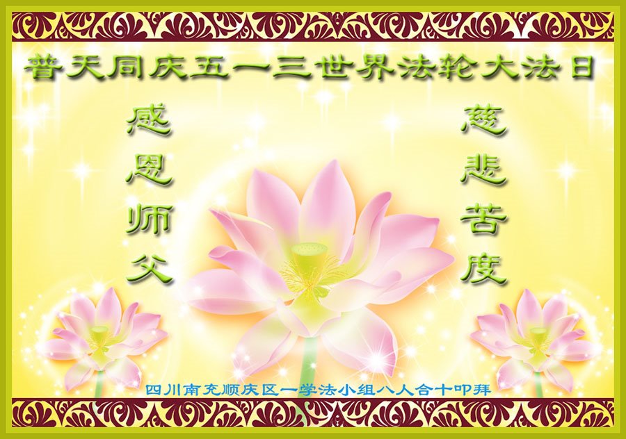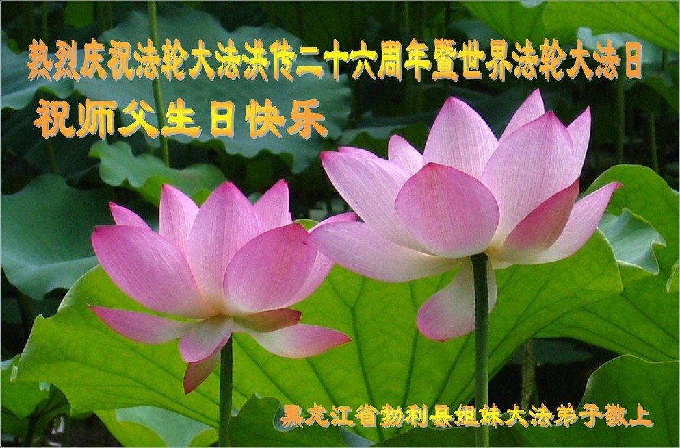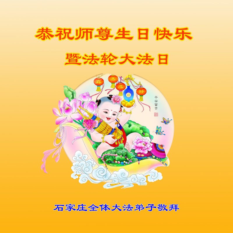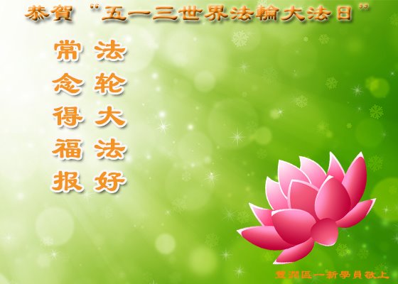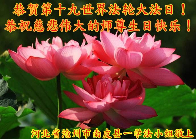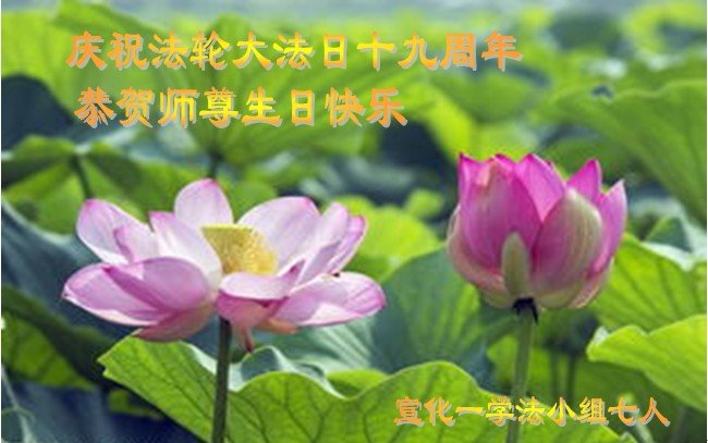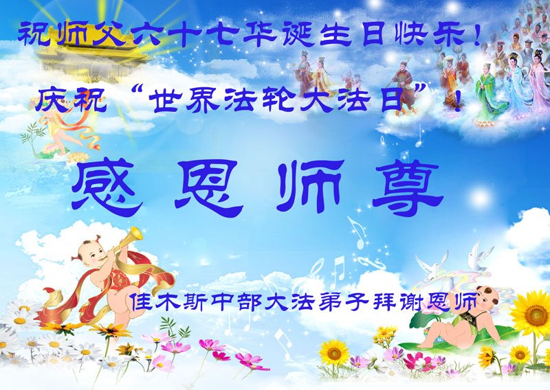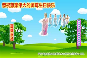 第19届世界法轮大法日来临之际,大陆新学员与海内外老同修们一起,同庆世界法轮大法日!感恩师尊传法度人!恭祝师尊生日快乐!