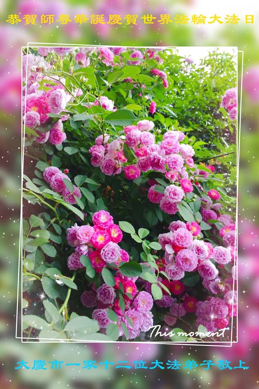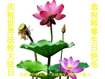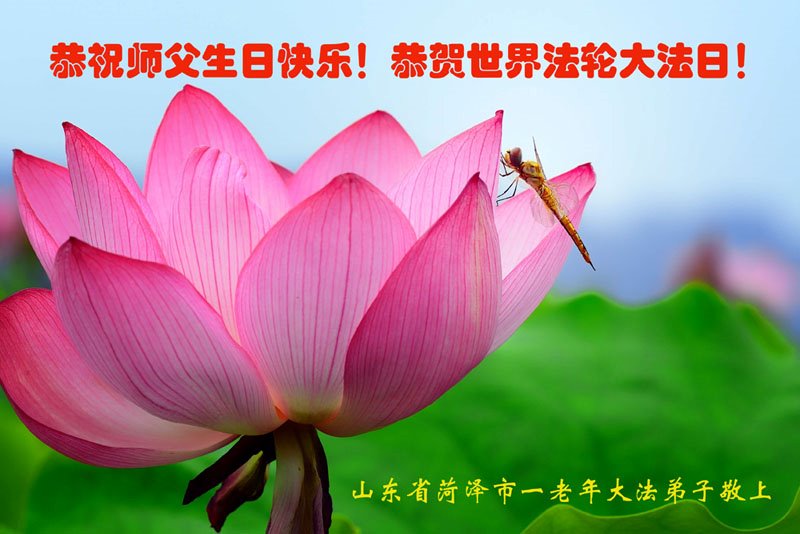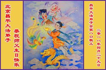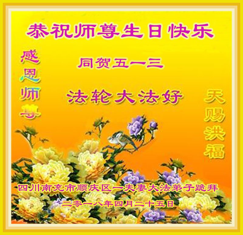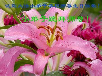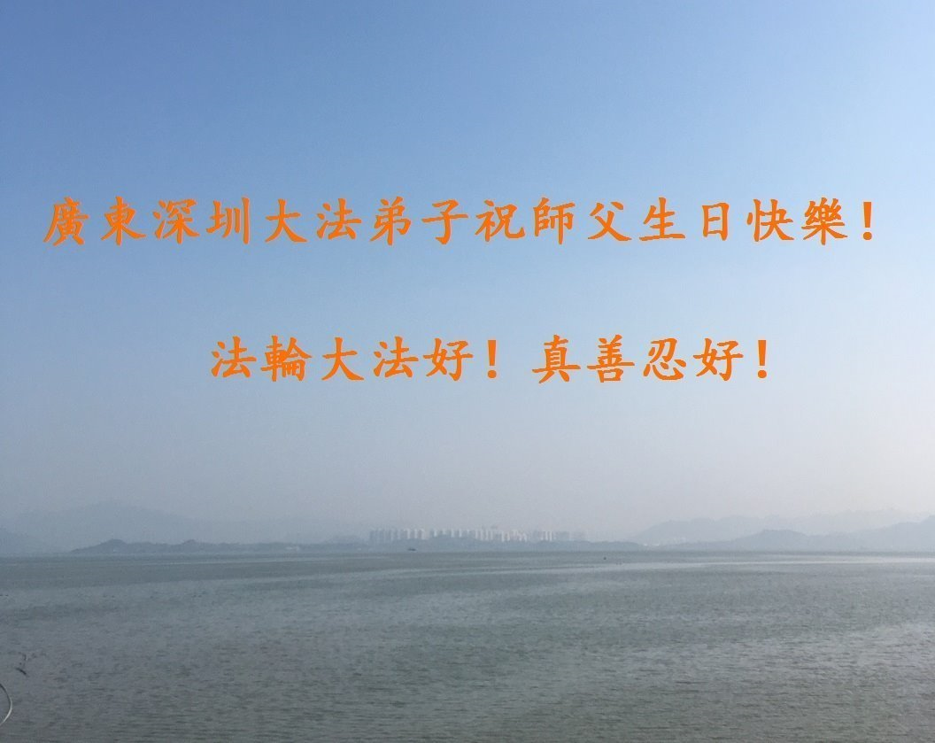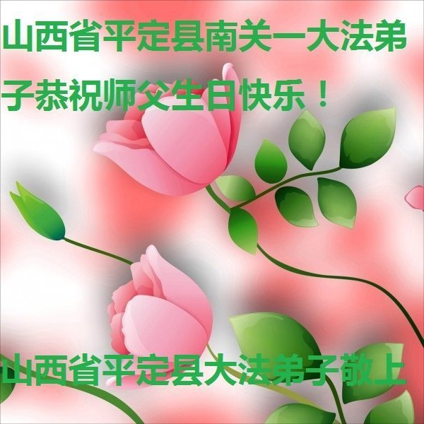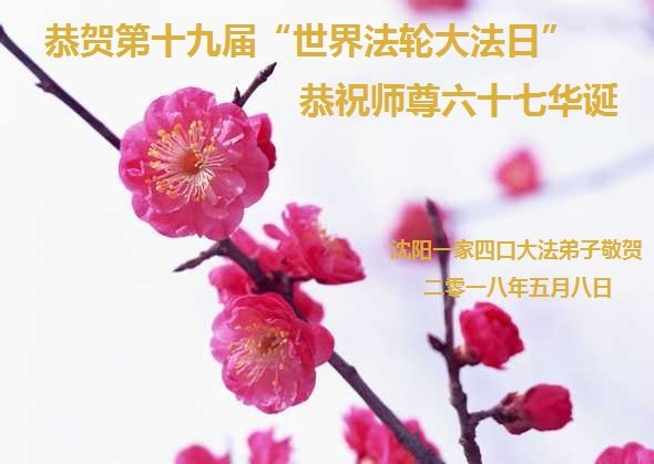 大法师父您好,您辛苦了,谢谢大法师父。送给我们拿千金万金都买不来的让我们能再一次重生的机会。您的大法徒冒着生命危险,不怕被抓,不怕坐牢,风雨无阻的给我们讲法轮功真相。使我们明白了大法的美好。了解了中共的邪恶,做了三退得以生命的永恒。大法师父的恩泽我们牢记心中。只有尽我们的一点微薄之利,顺应天意还您与大法清白。我身为大法弟子的家属,见证了中共邪党长达19年对法轮功学员的迫害过程。您为法轮功学员与家人所承受与付出的那份艰辛。我们感受到了您的慈悲与祥和。大法师父您辛苦了,在您生日喜庆的日子里,我代表我爸爸、妈妈、大姐、女儿祝您生日快乐!我会一如既往的承担家中的生活家务,支持妻子修炼,多救人,做她应该做的。谢谢您保护我们全家人。我们在大陆恭迎您早日回来的那一天。