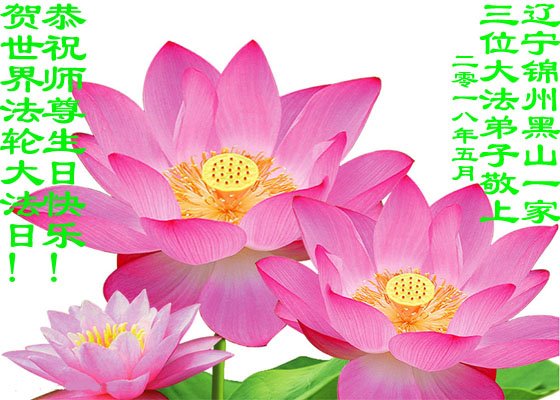 在伟大、慈悲的师父生日到来之际,明真相的三名家人衷心祝愿李洪志大师生日快乐!亲家母真诚的说:师父度人辛苦了!女婿女儿也都说:祝师父生日快乐!佛光普照!
