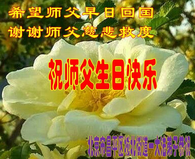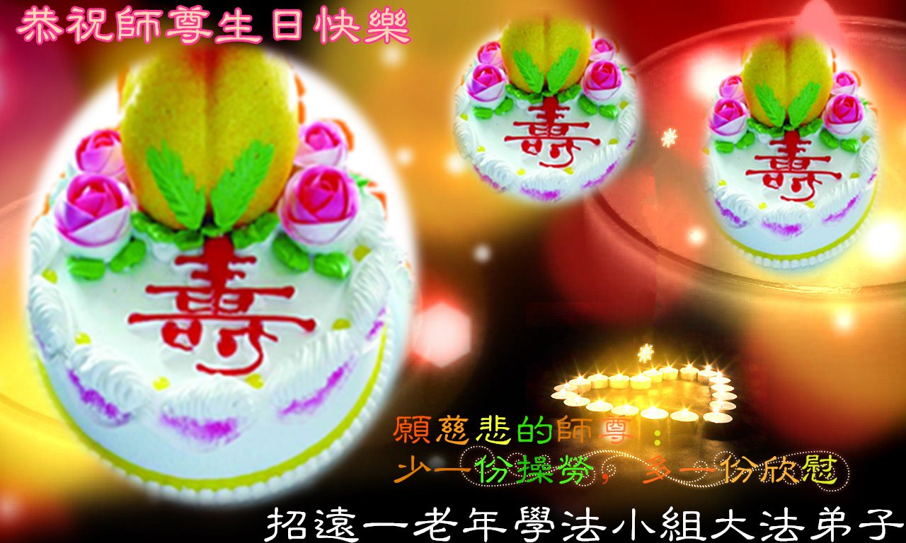祝师父生日快乐!多谢师父传法度人!希望师父尽早回国!