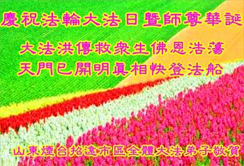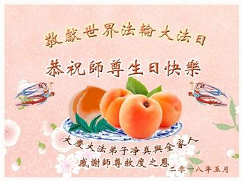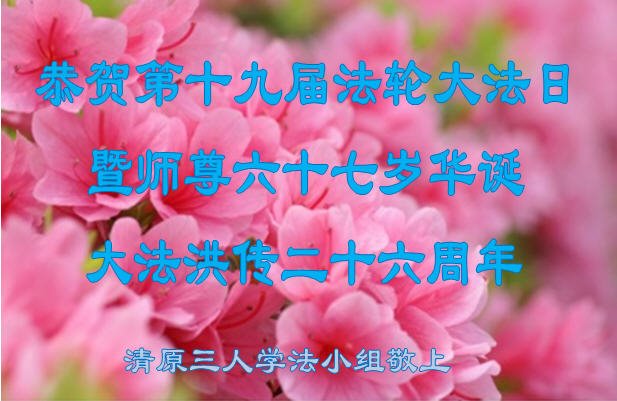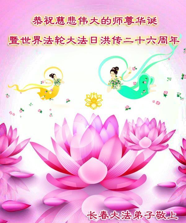 在法轮大法洪传二十六年的纪念日,同时也是大法师父六十七华诞以及第十九届世界法轮大法日,明真相民众纷纷向大法师父李洪志先生表示感恩和祝贺。