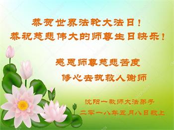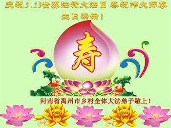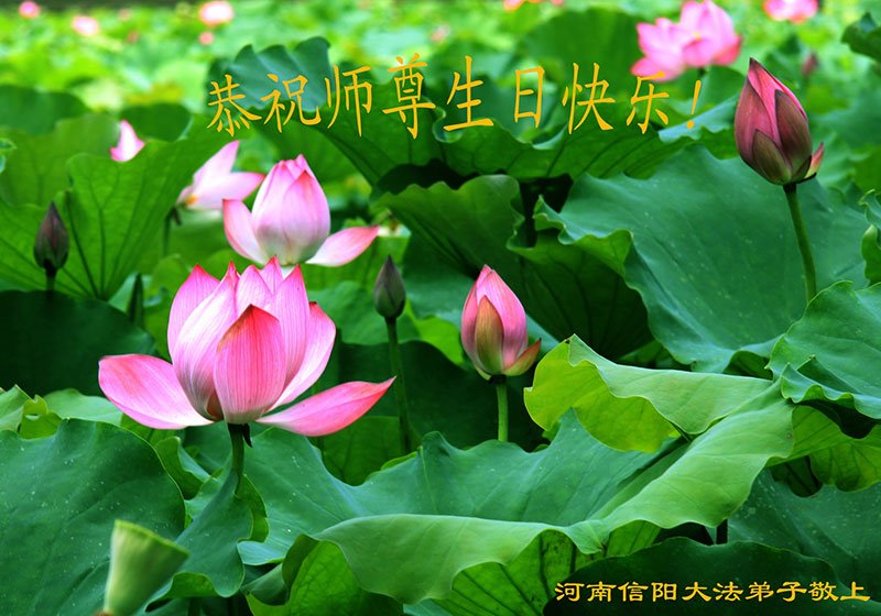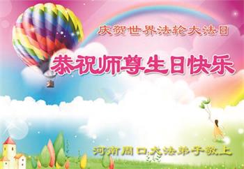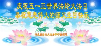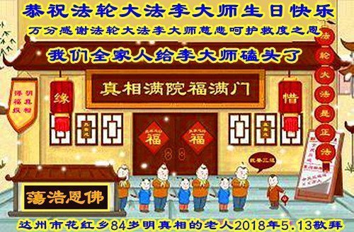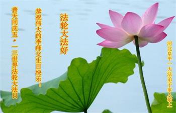 河南省安阳一位大法弟子家属表示:“衷心恭祝李大师生日快乐!暨‘五一三’世界法轮大法日!法轮大法是教人向善的正法正道,但在国内却无端遭受了近十九年迫害。祝愿法轮大法在新的一年更好的弘扬世界。”