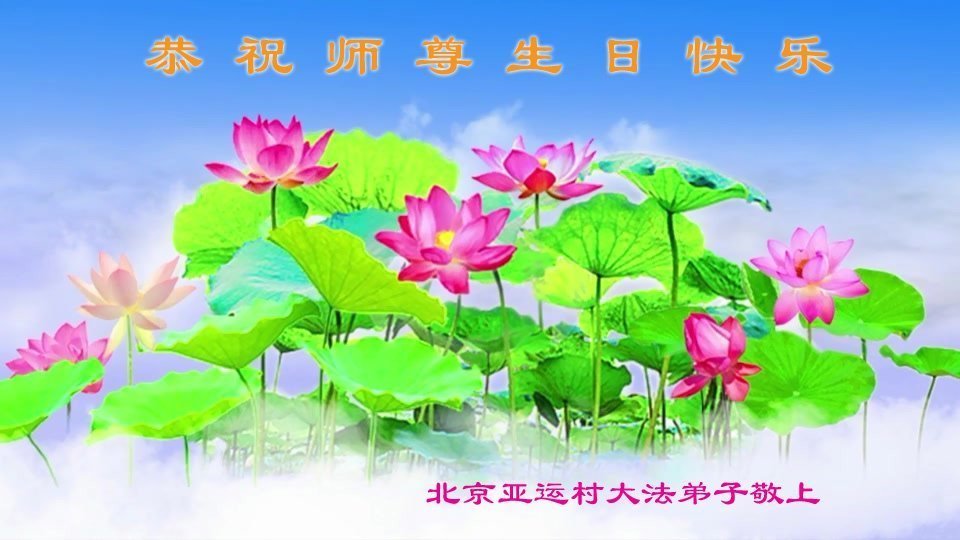 一位北京大法弟子的家属说:“我身为大法弟子的家属,见证了中共邪党长达十九年对法轮功学员的迫害过程。大法师父,您辛苦了,在您生日喜庆的日子里,我代表我爸爸、妈妈、大姐、女儿祝您生日快乐!我会一如既往的承担家中的生活家务,支持妻子修炼,多救人,做她应该做的。谢谢您保护我们全家人。我们在大陆恭迎您早日回来的那一天。”