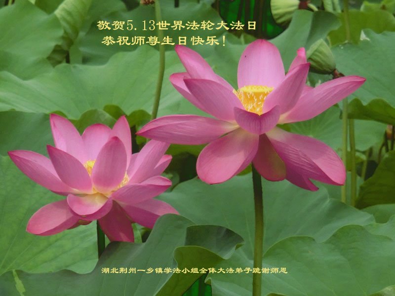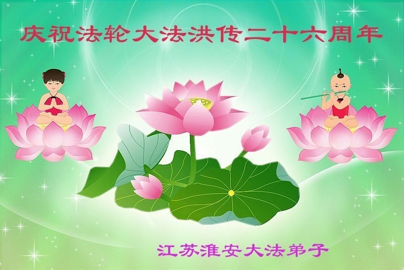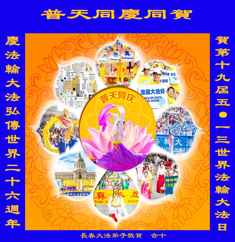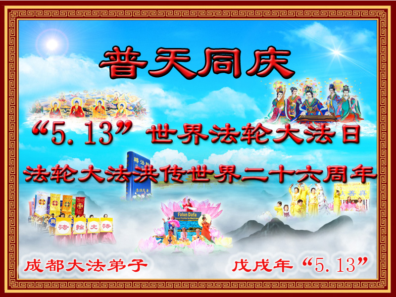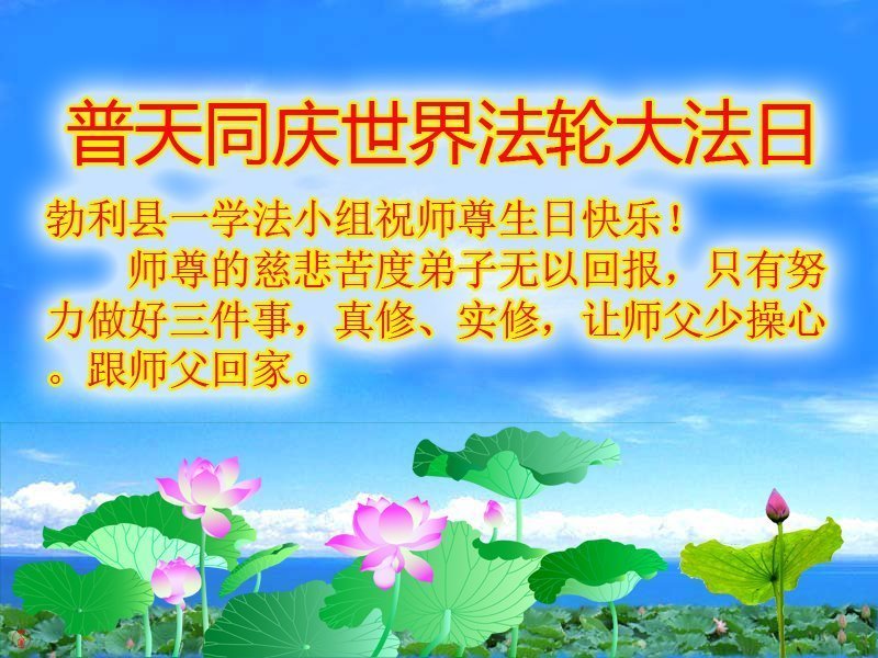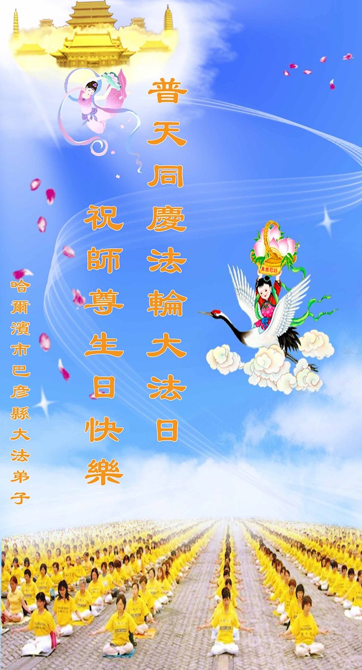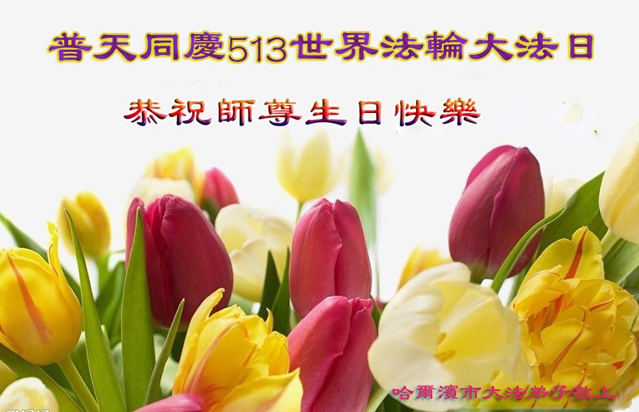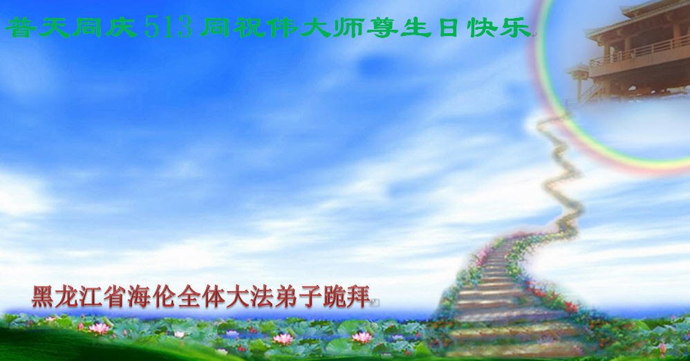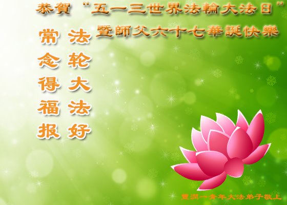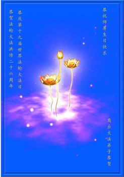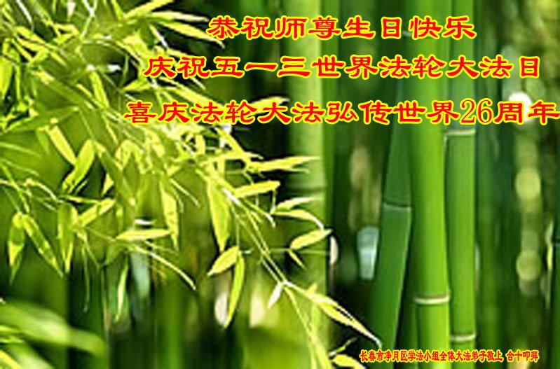在这普天同庆法轮大法传世二十六周年,共庆“五一三世界法轮大法日”的美好时刻,我们全体大法弟子向慈悲伟大的师尊献上心底最真挚的祝愿:师父您好!师父您辛苦了!弟子们感谢师尊的慈悲苦度!