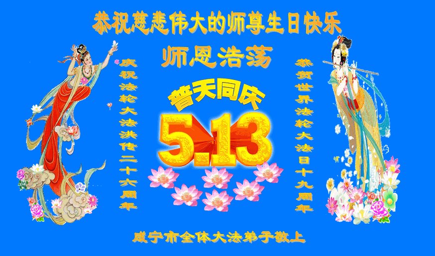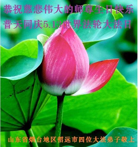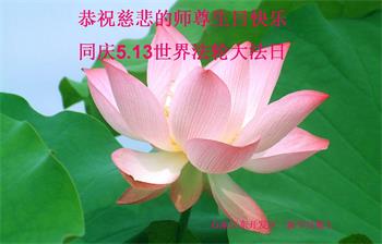 在普天同庆、同祝、同贺五一三世界法轮大法日,我怀着对师尊无比感恩之心,恭祝最伟大慈悲师父节日快乐!师尊您好!师尊您辛苦了!