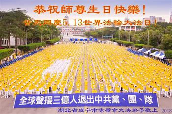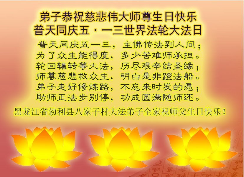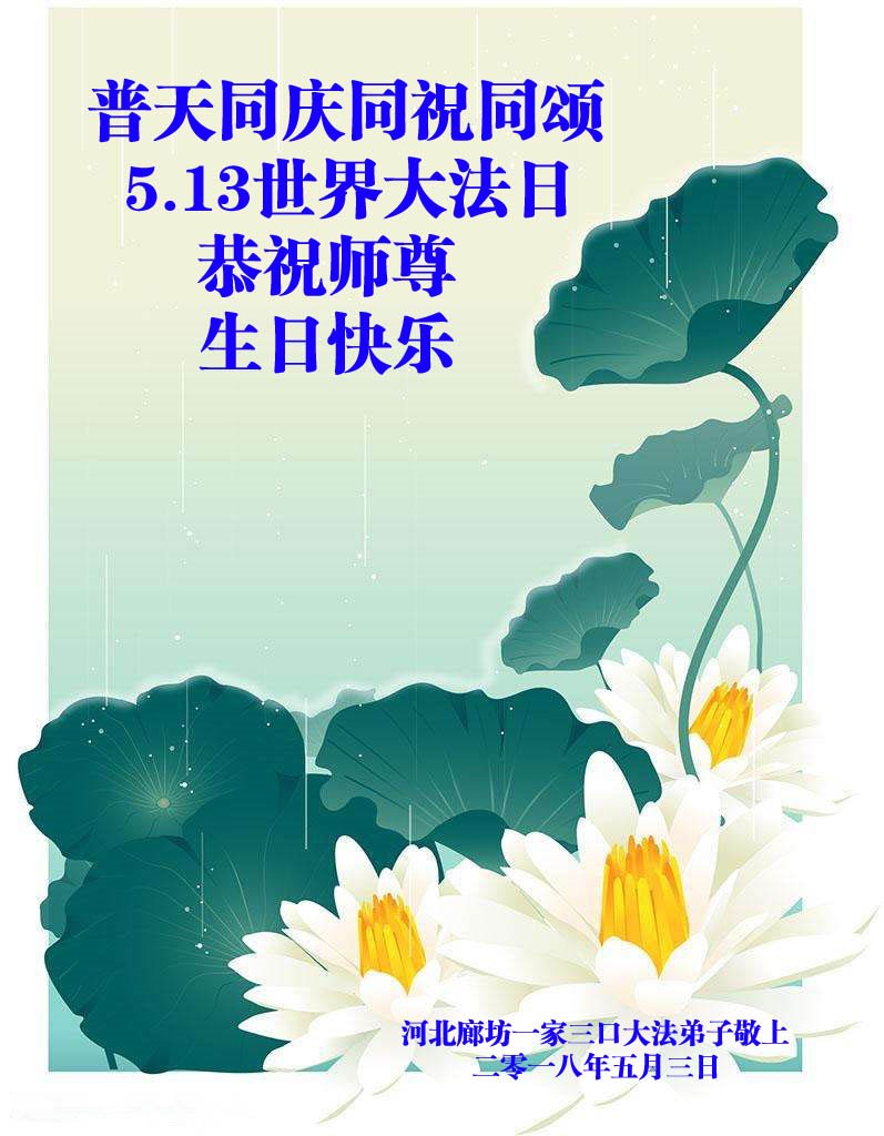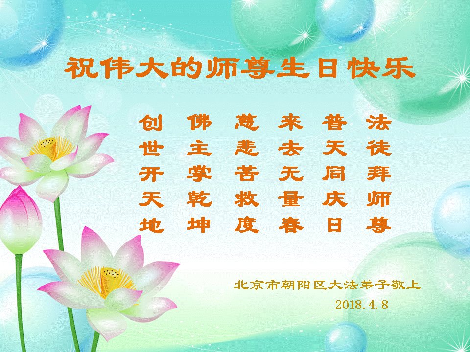 <英文版: http://en.minghui.org/html/articles/2018/5/12/170009.html>大陆大法弟子恭贺师尊华诞